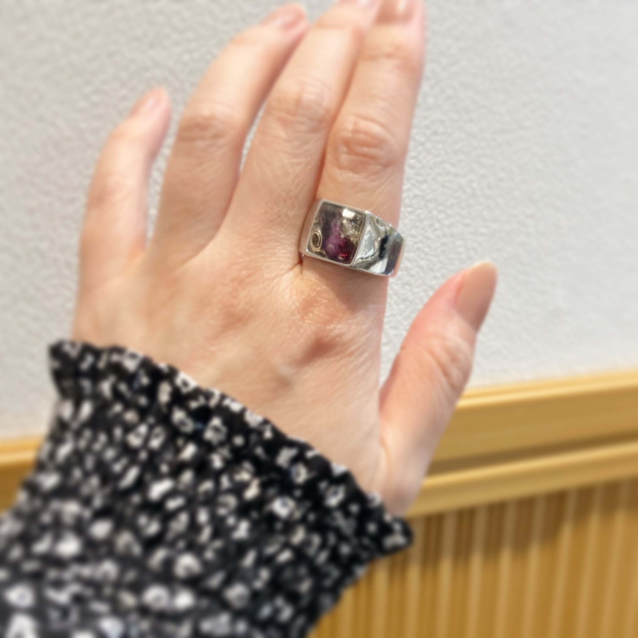 超隕石®︎をたっぷり敷き詰めたオルゴナイトリングのアツい隕石パワーとオルゴナイトの浄化パワーをお楽しみください.*