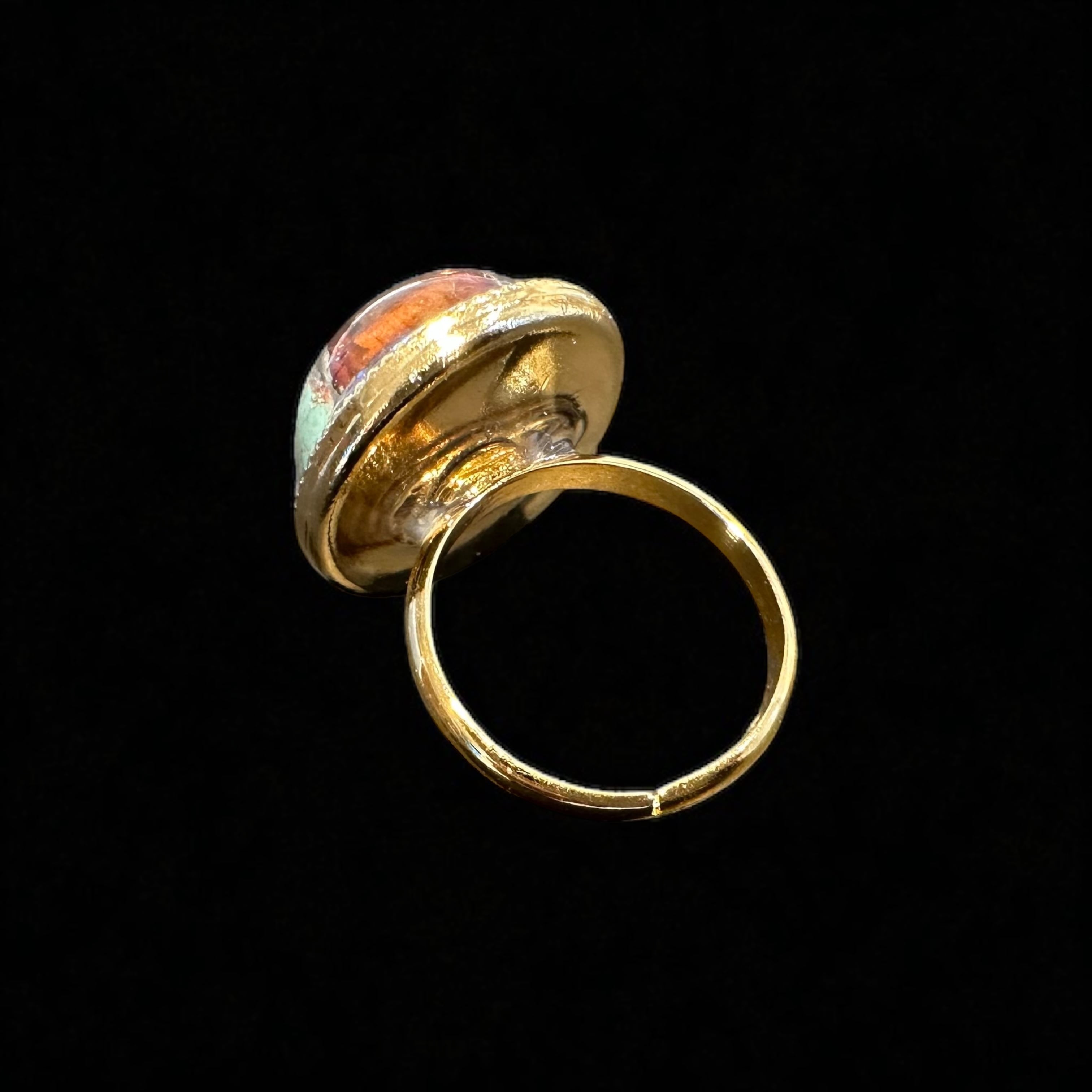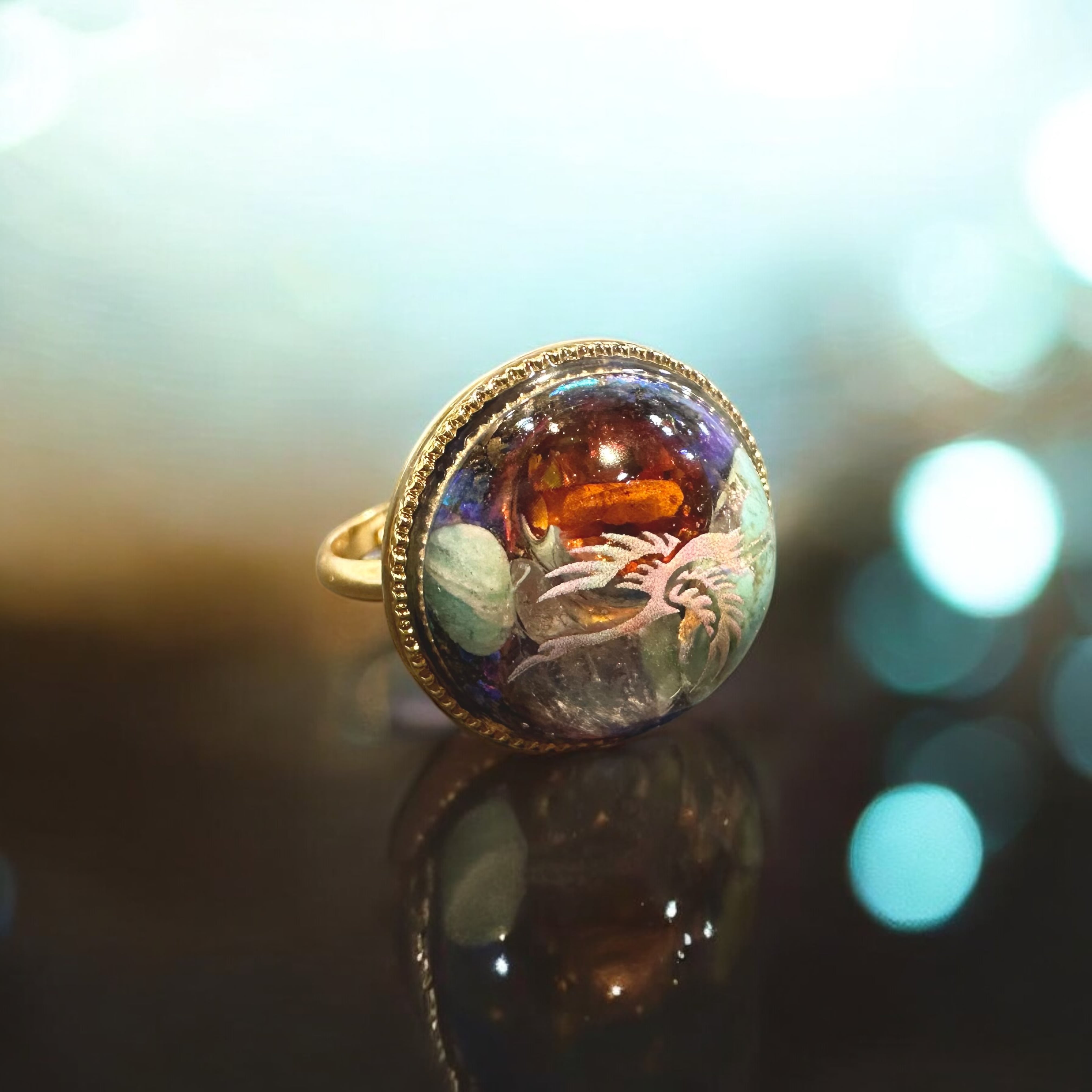 こちらは隕石と天然石を組み合わせ、一つの宝石のように仕立てた一粒ジュエルシリーズのリングverです。
