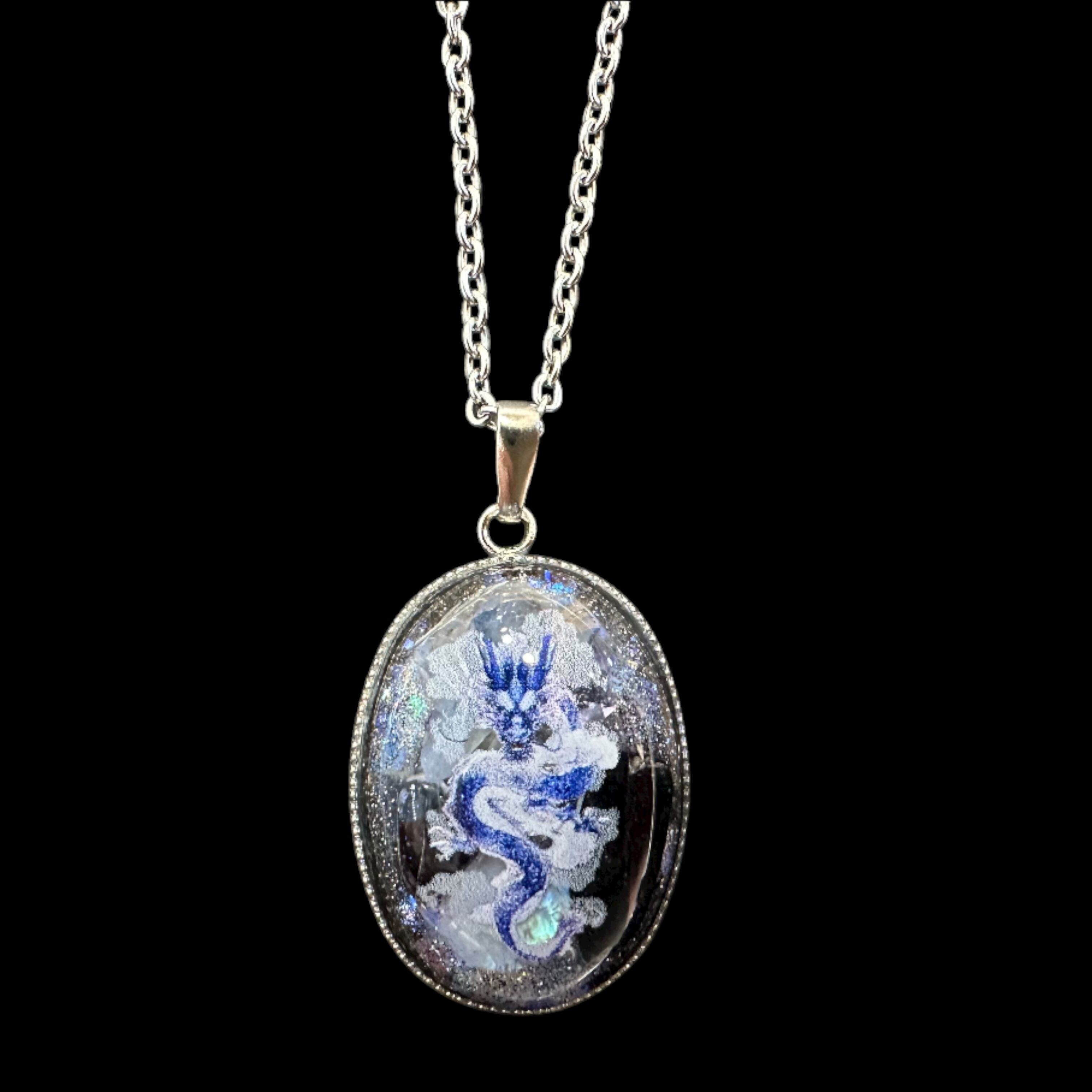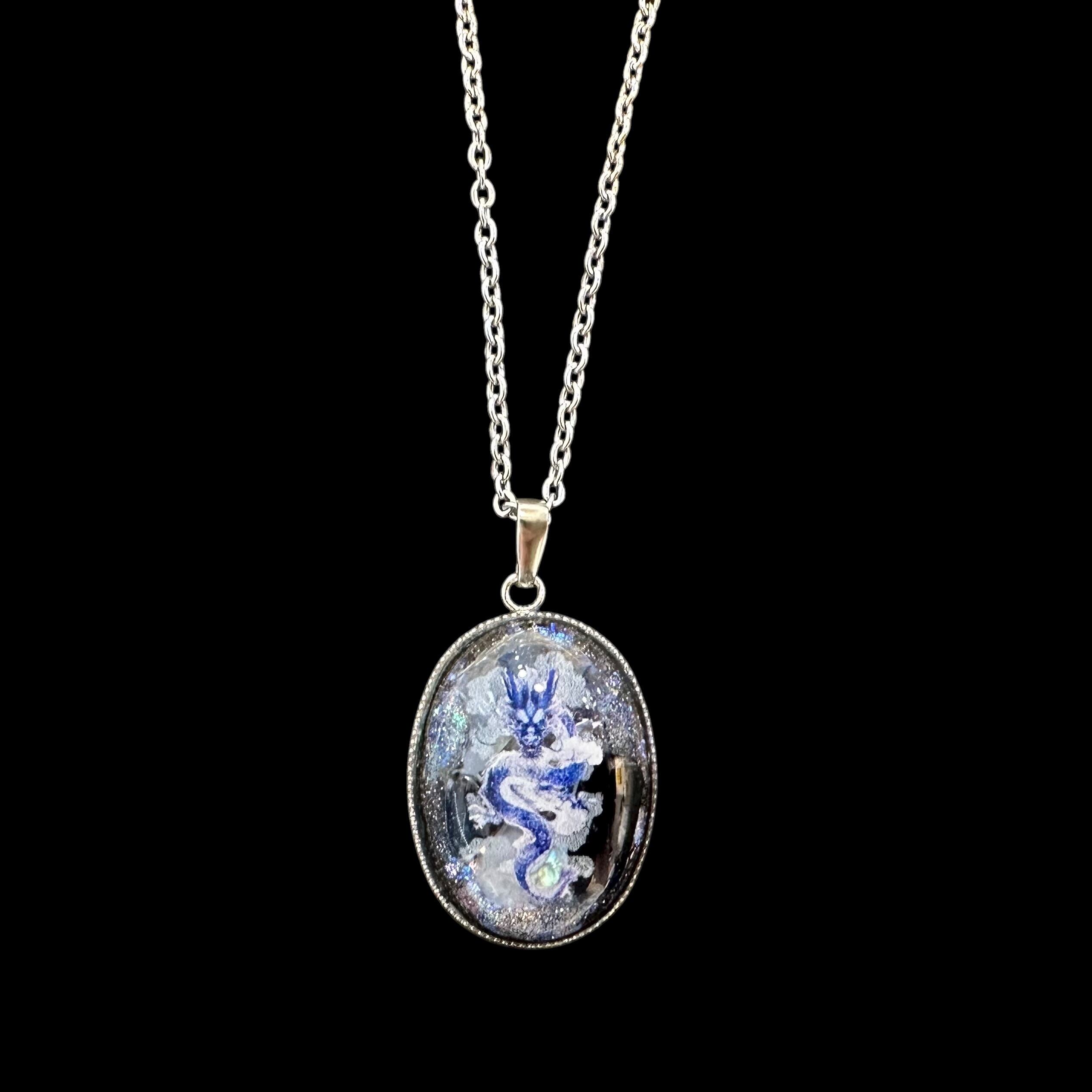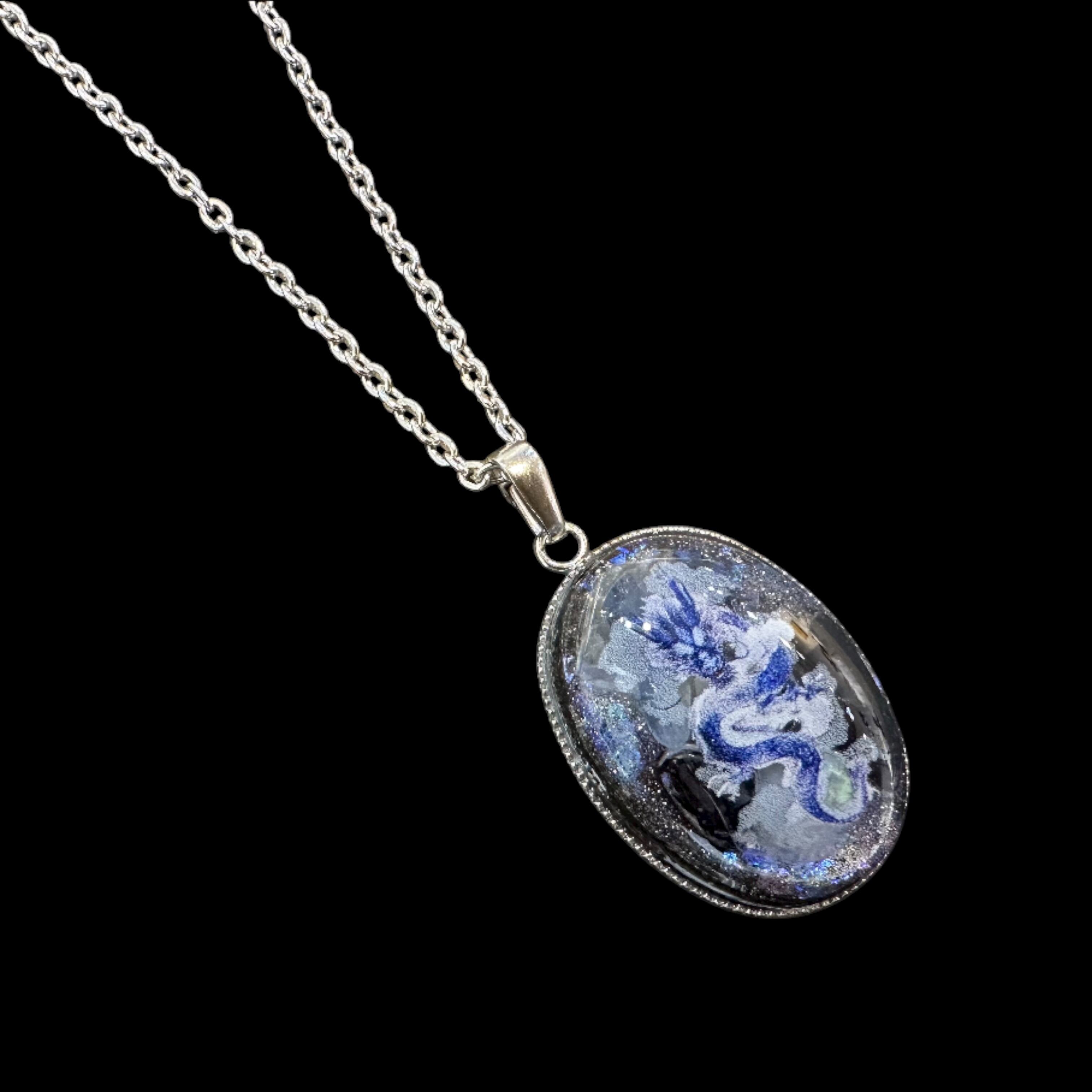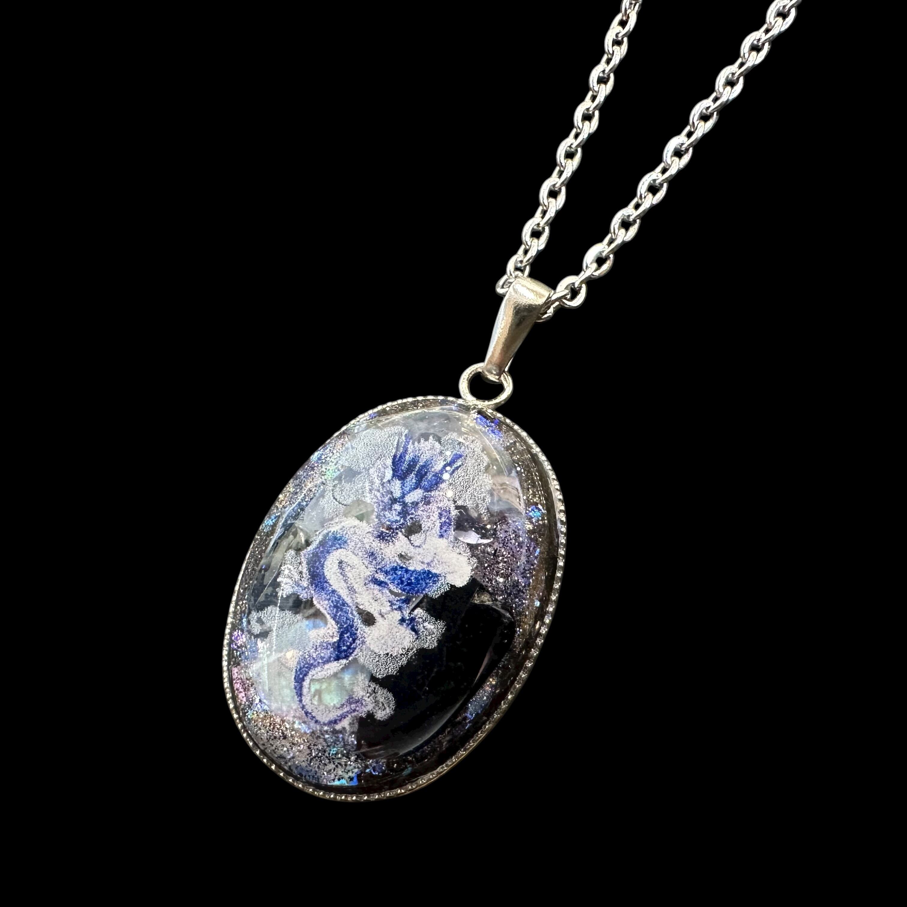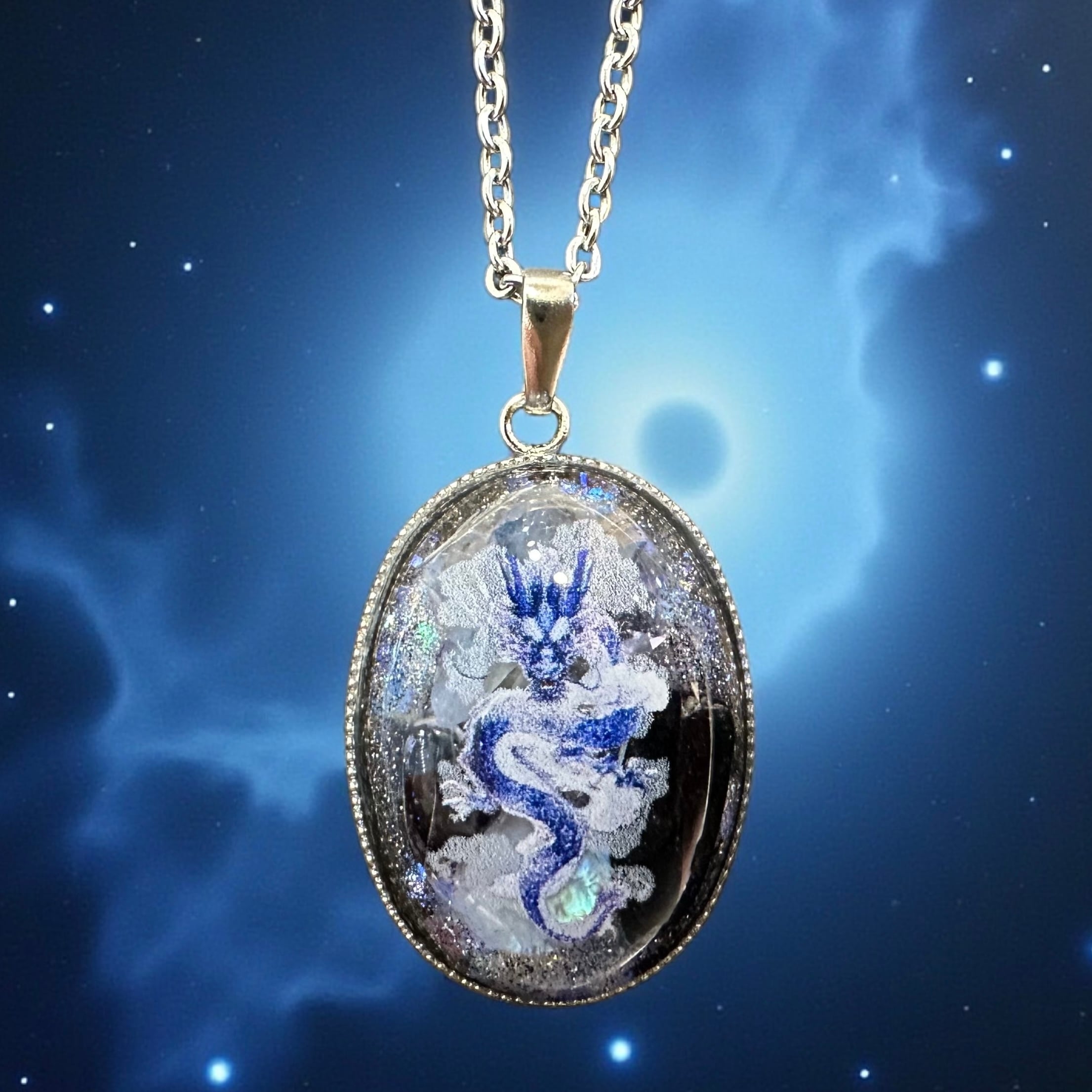 【天恵】覚悟を後押しする龍☆超隕石×天然石一粒ジュエルネックレス【シルバー】【7412】