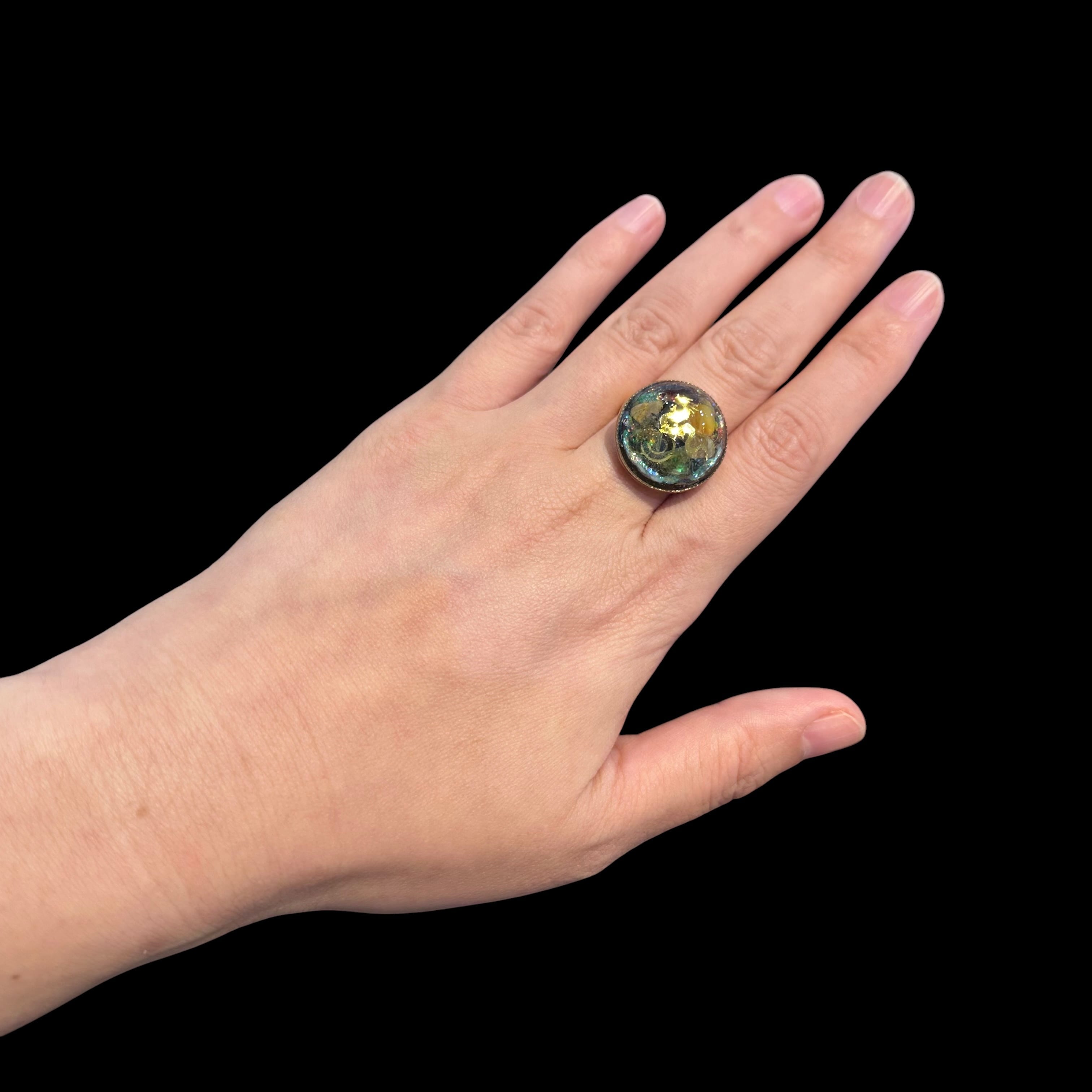 こちらは隕石と天然石を組み合わせ、一つの宝石のように仕立てた一粒ジュエルシリーズのリングverです。