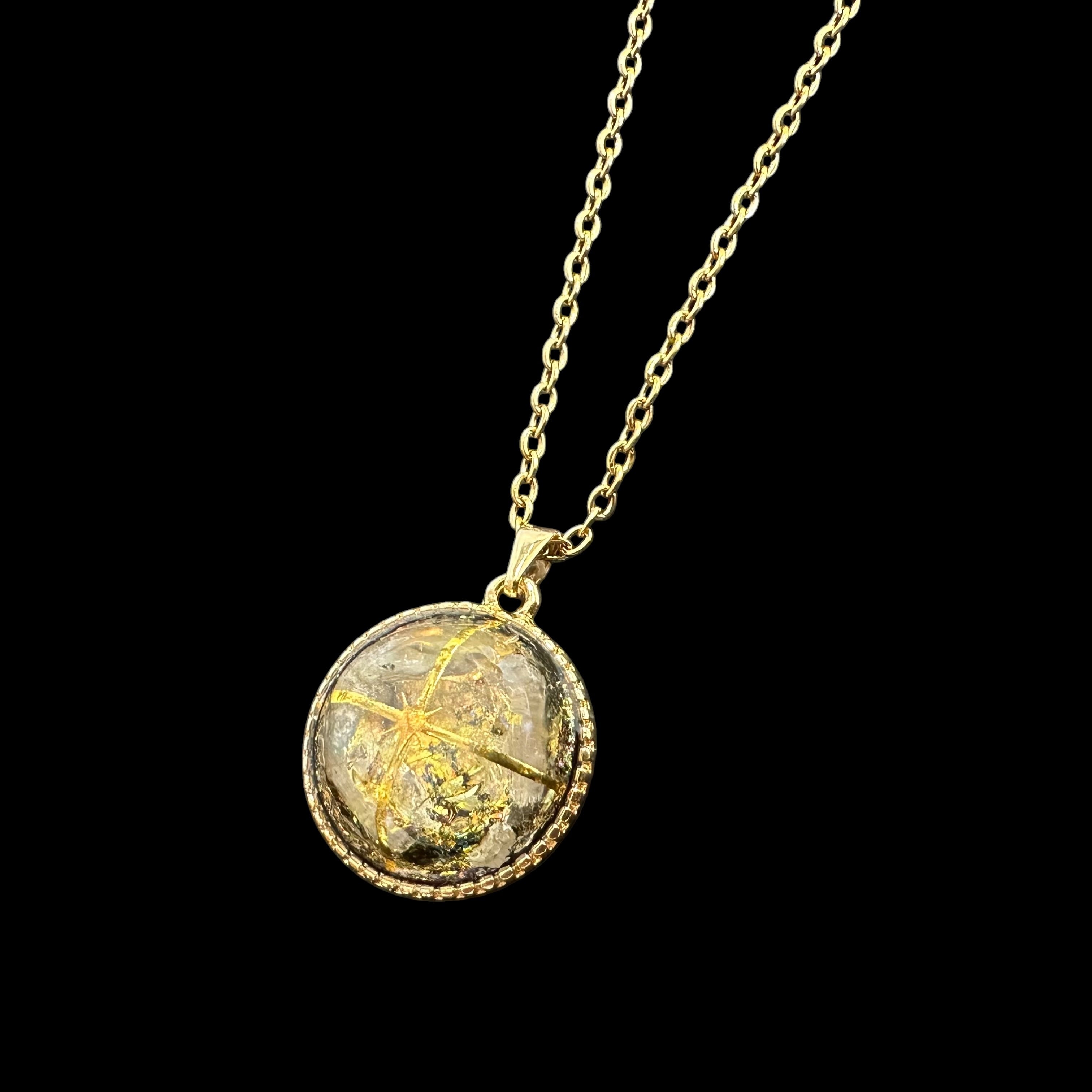 【天恵】誓いの光 ☆超隕石×天然石一粒ジュエルネックレス/サークルver【ゴールド】【7405】