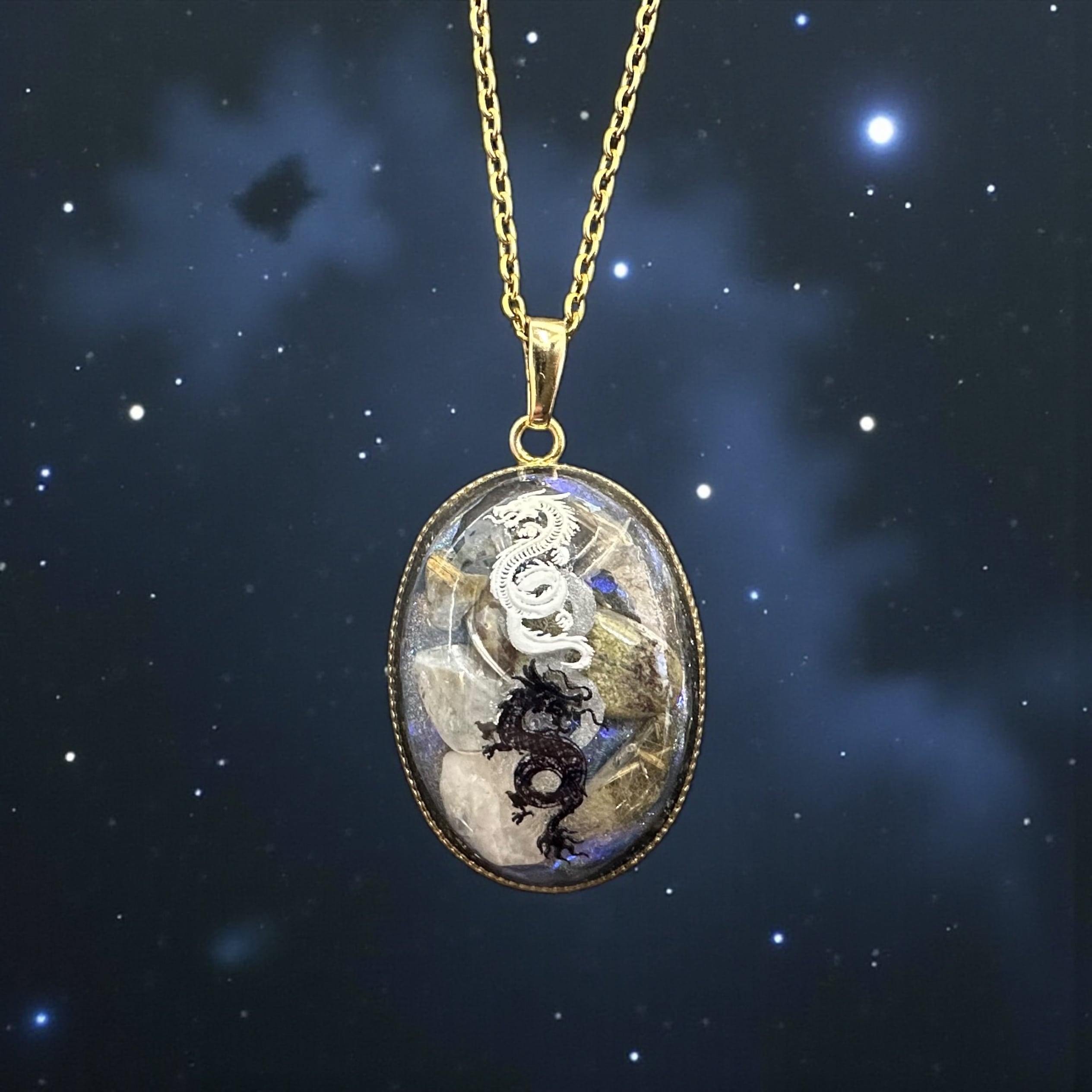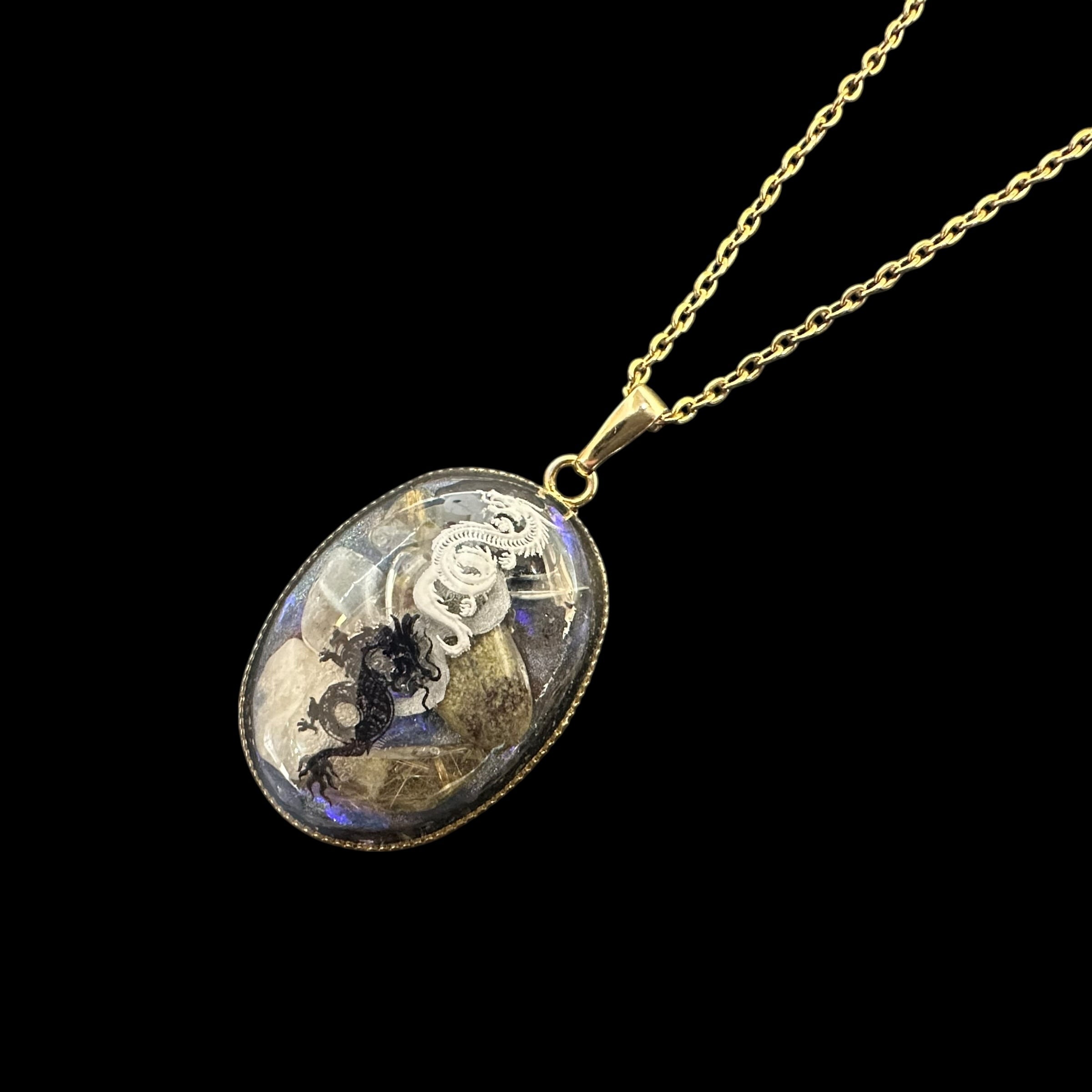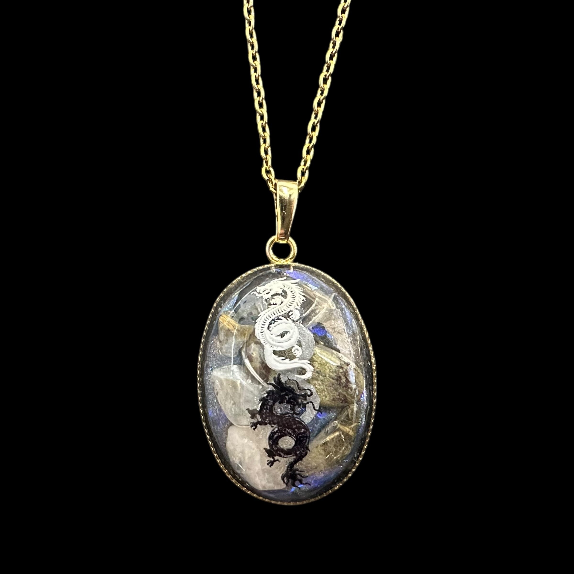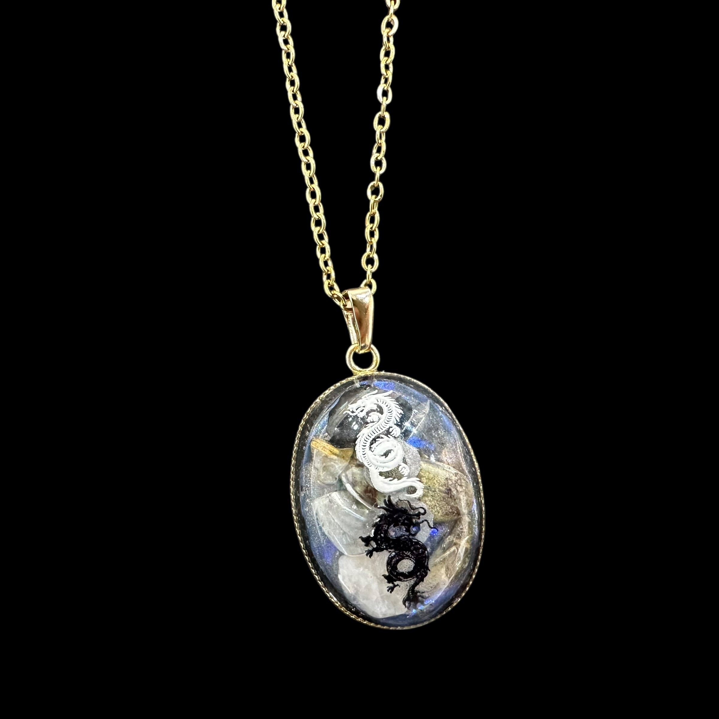 【天恵】天と地の融合の龍 ☆超隕石×天然石一粒ジュエルネックレス【7437】