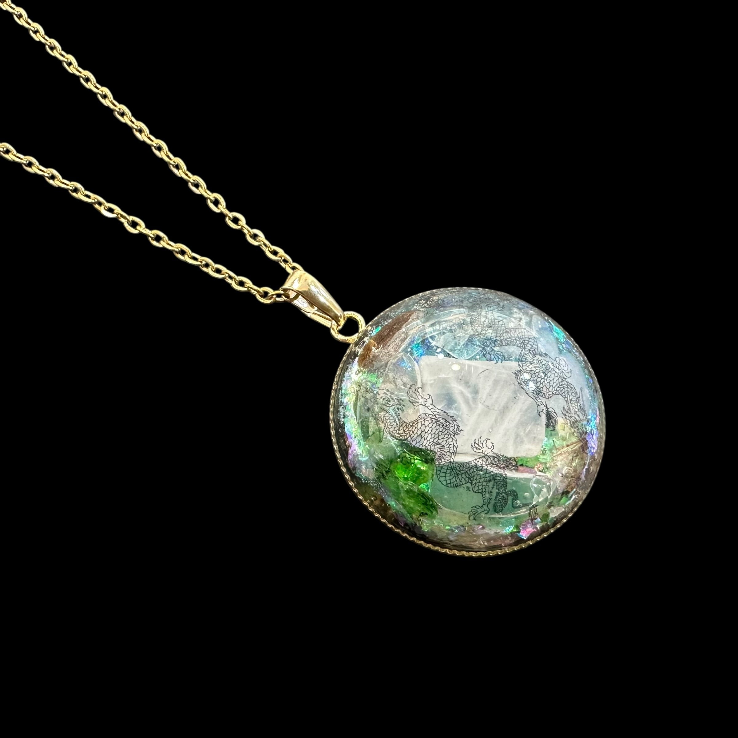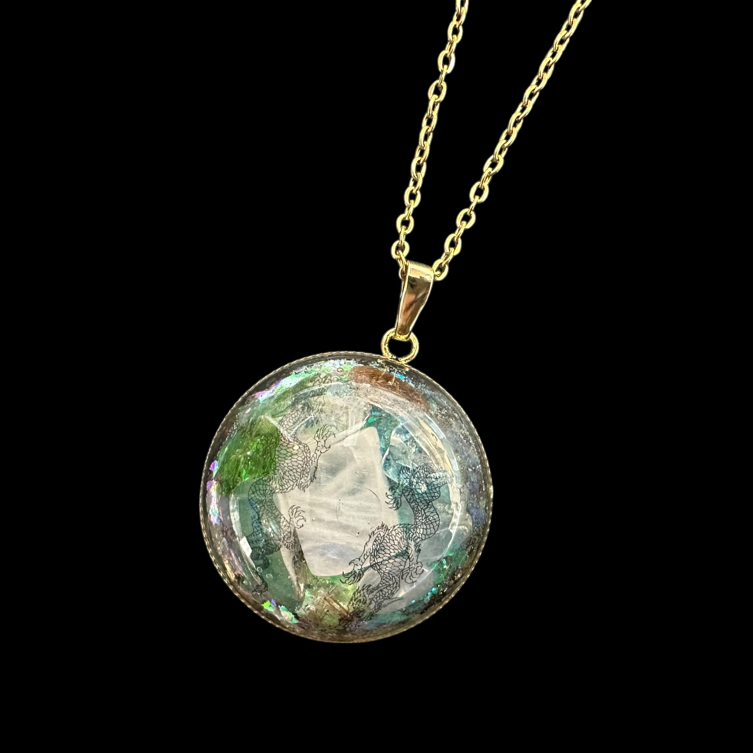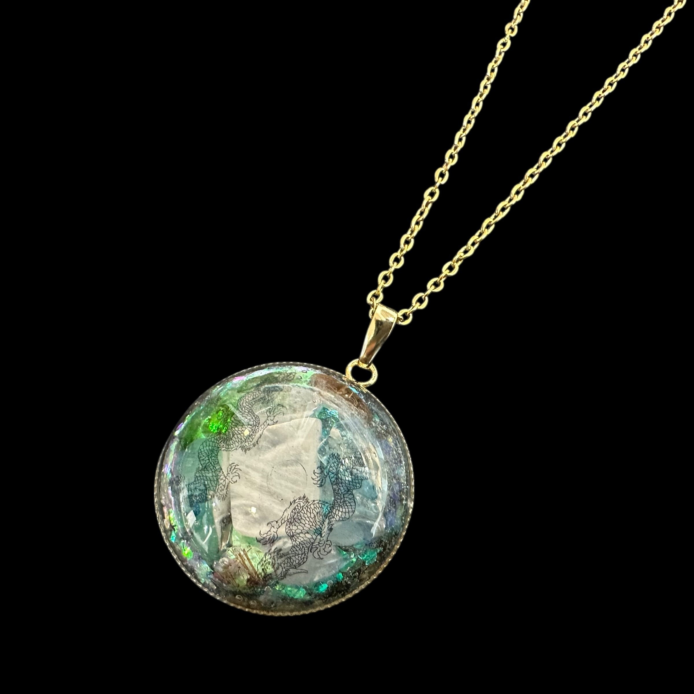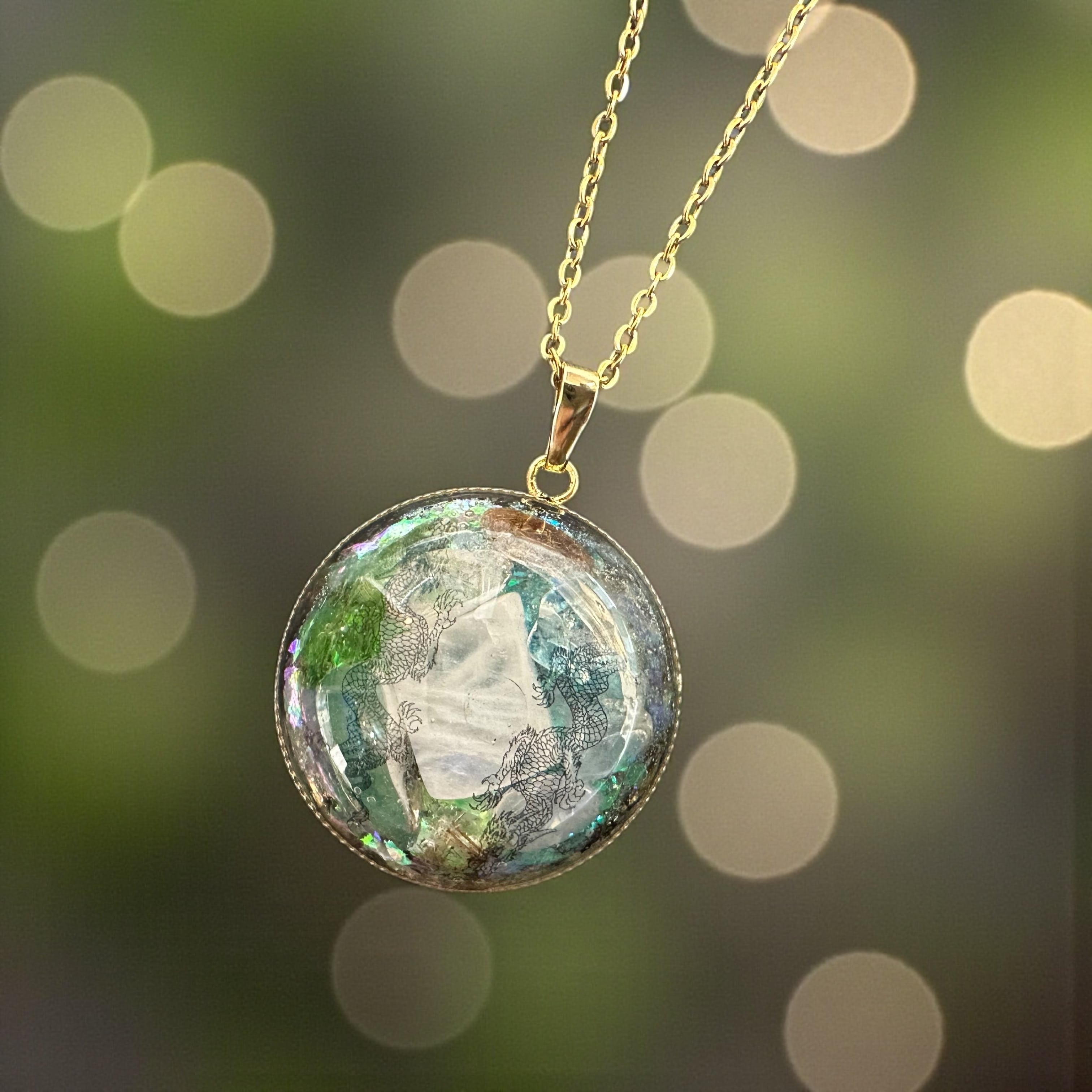 【天恵】喜びの循環を起こす龍たち ☆超隕石×天然石一粒ジュエルネックレス【7438】
