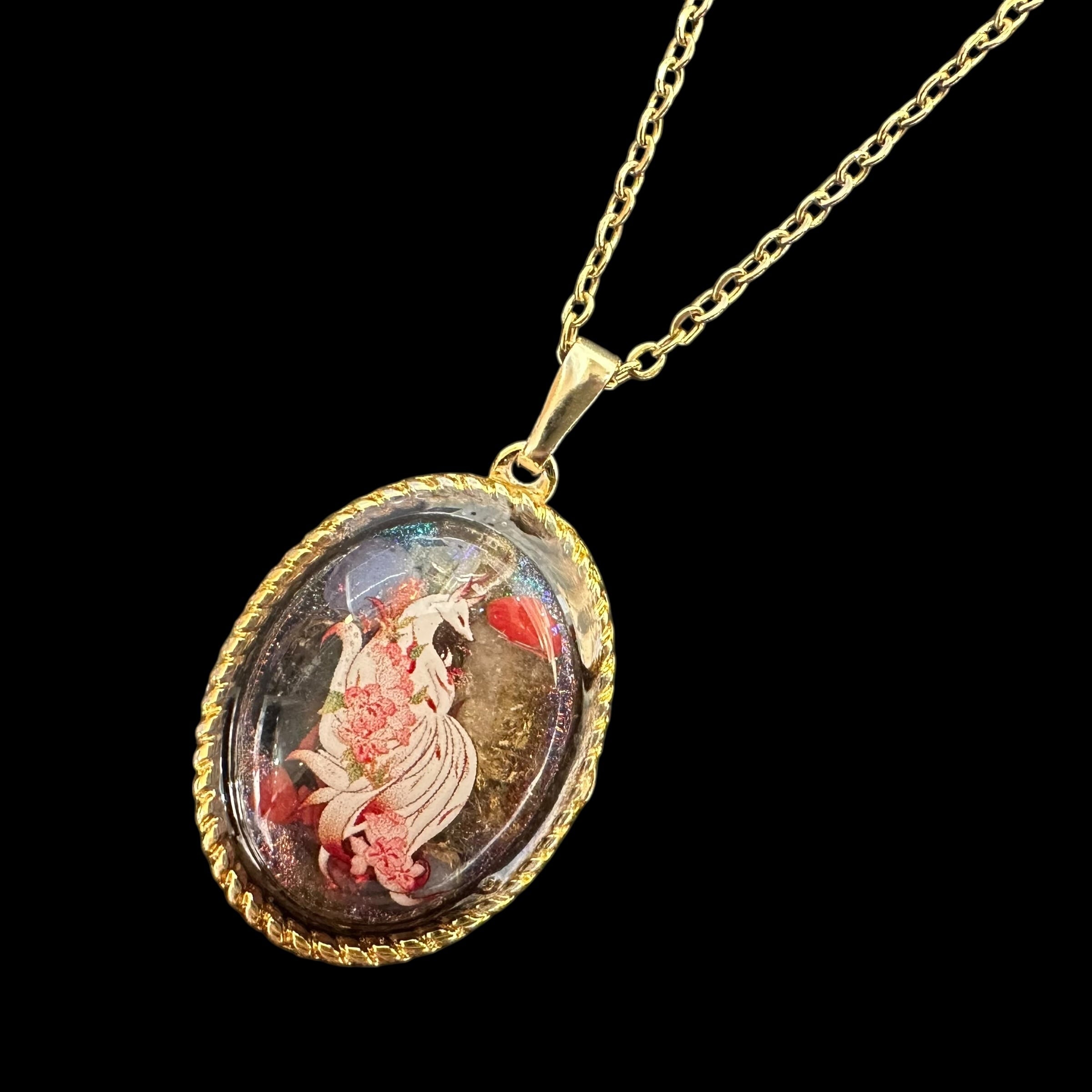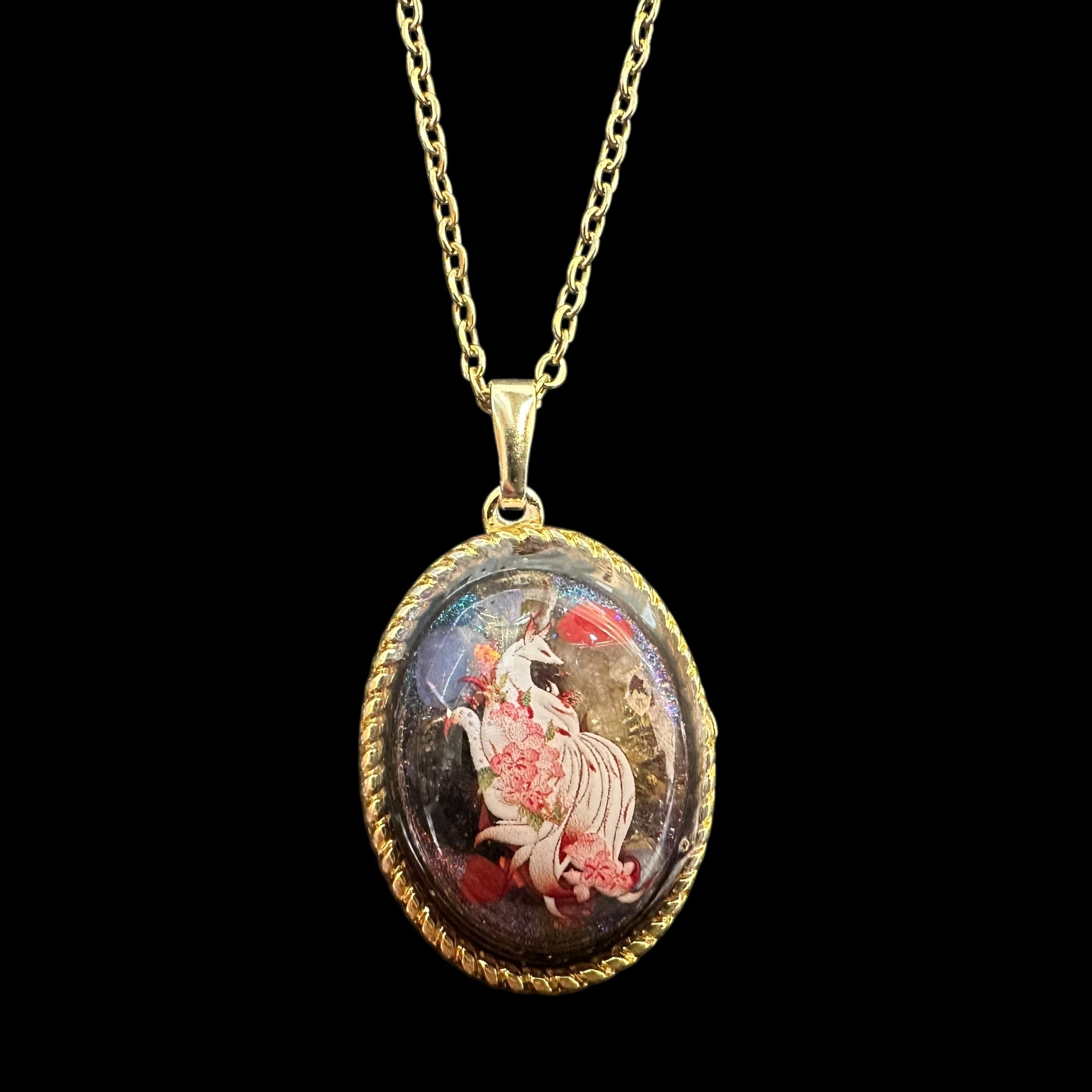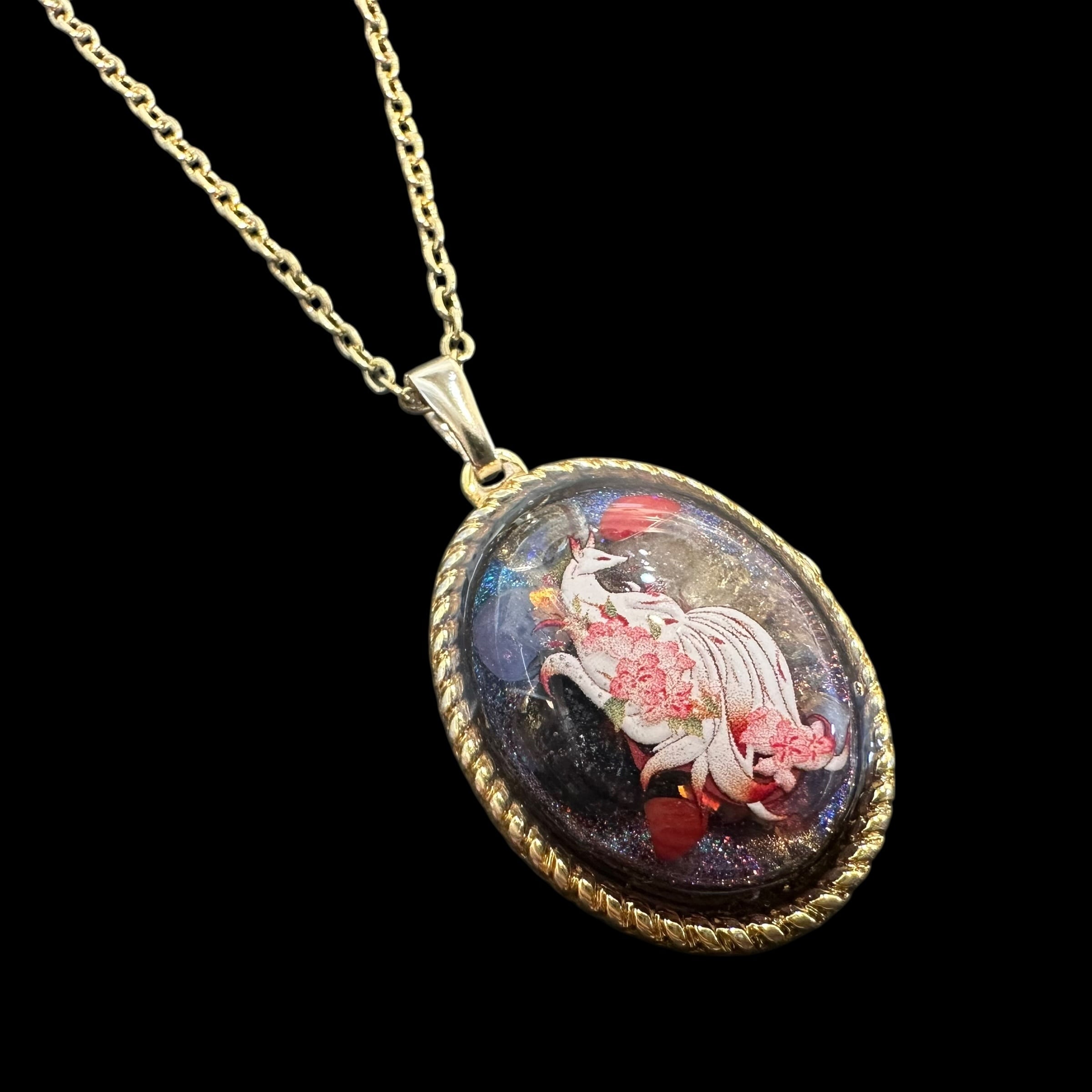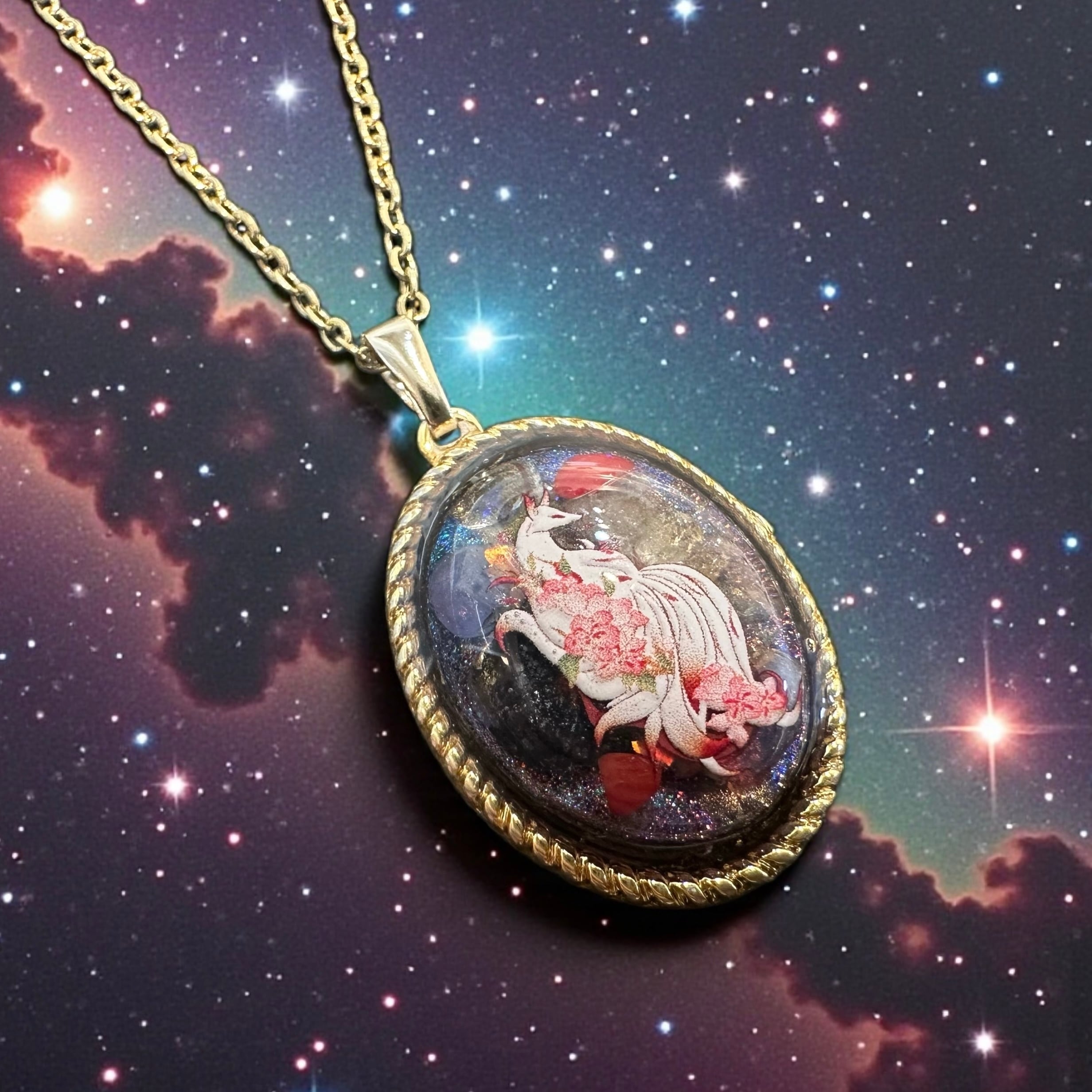 【天恵】本質の愛の智慧を持つ狐 ☆超隕石×天然石一粒ジュエルネックレス【7433】