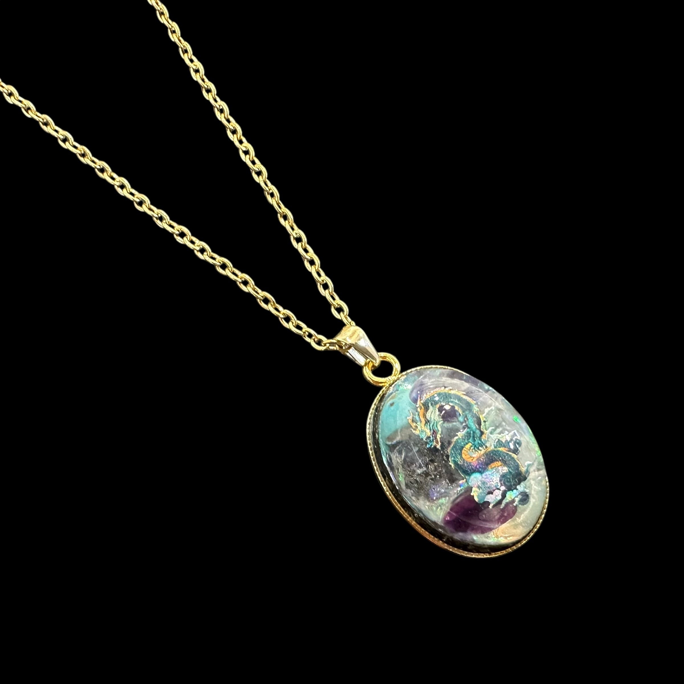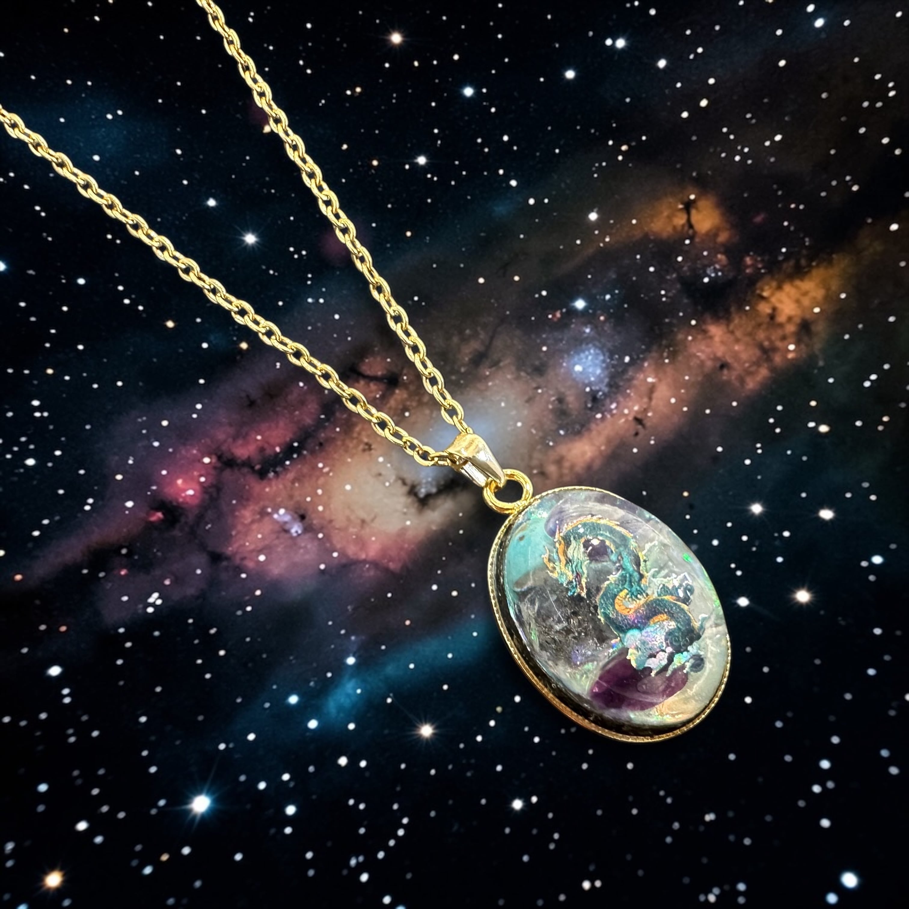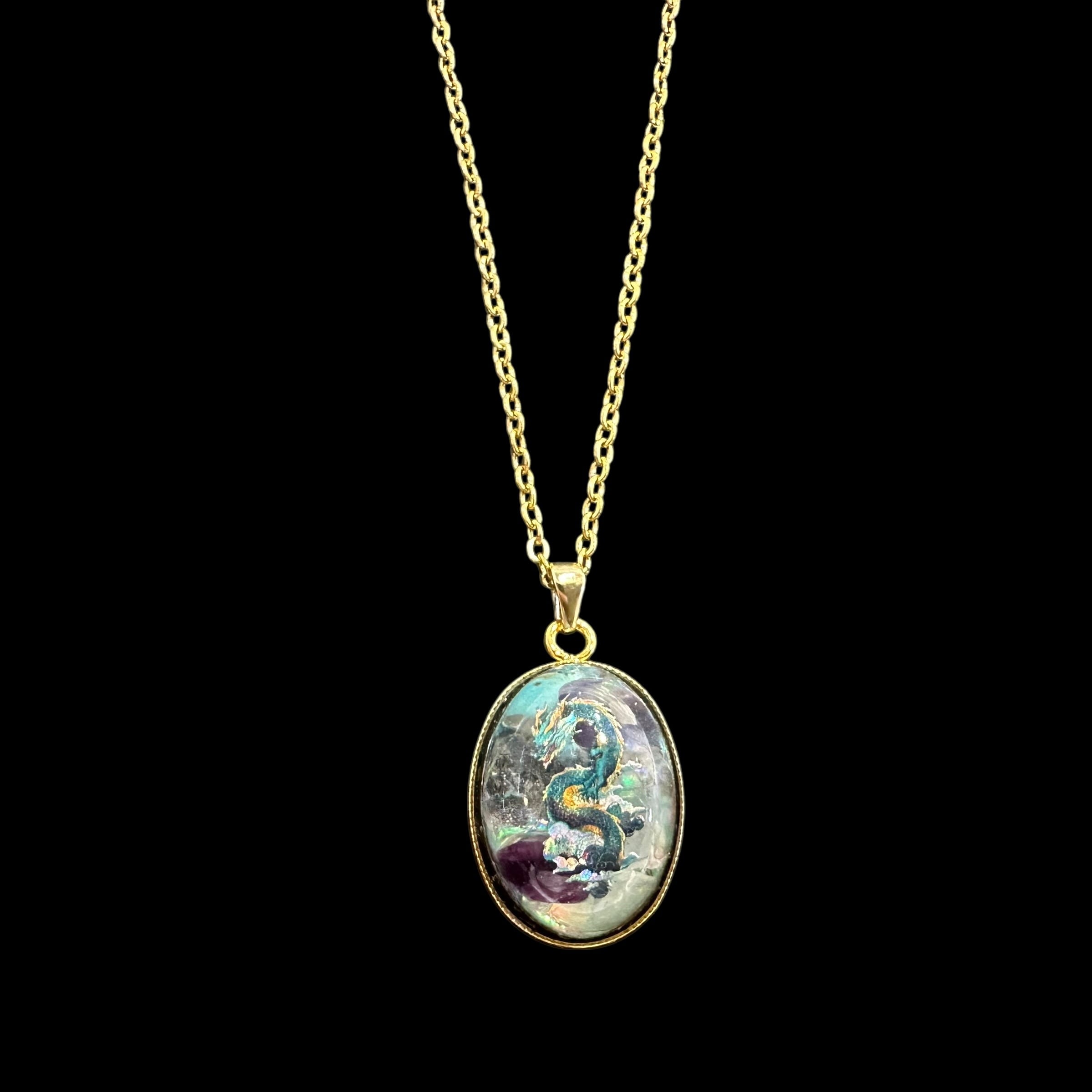 【天恵】純粋さを伝える氣龍 ☆超隕石×天然石一粒ジュエルネックレス【7435】