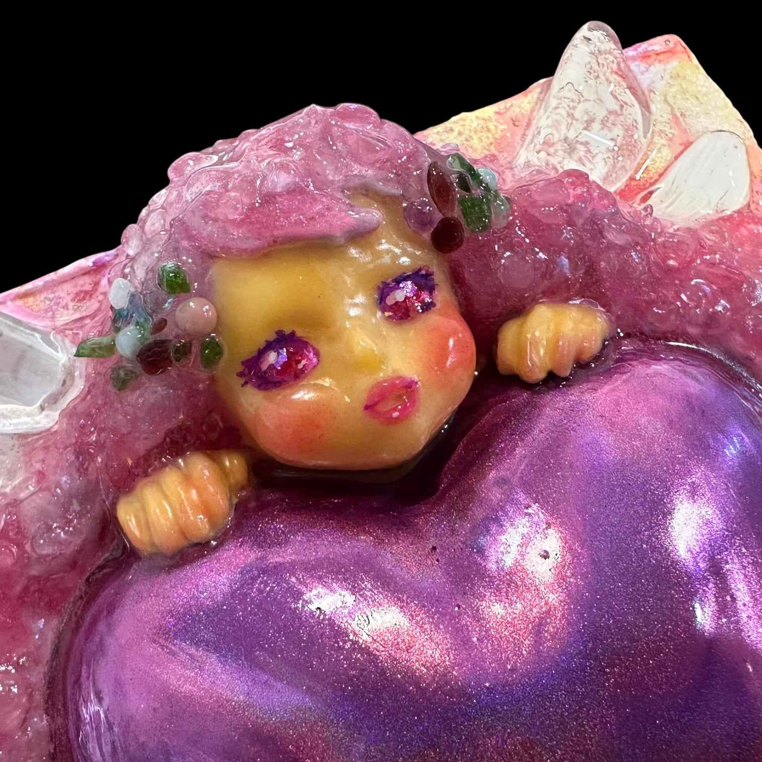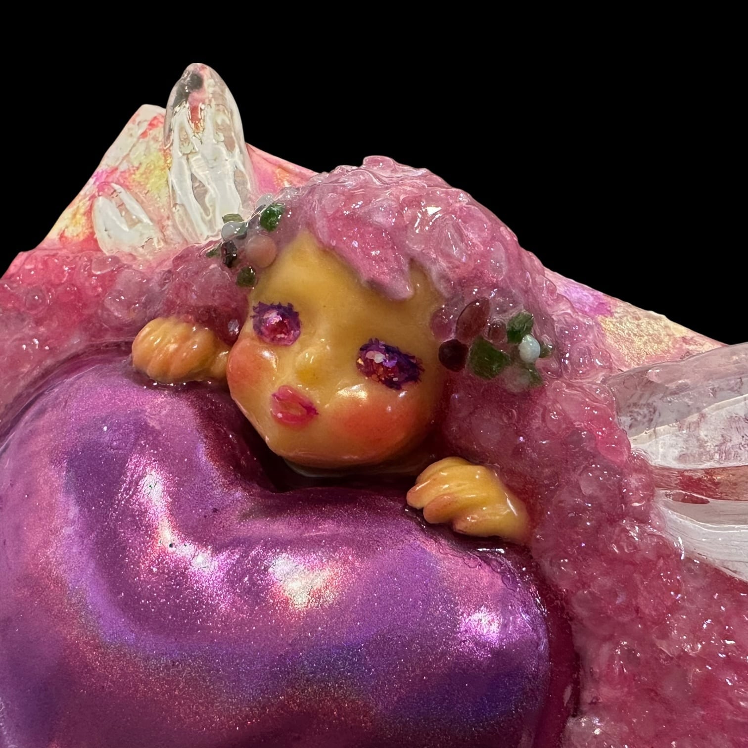 那智の滝の旅の後に、その作品が目に止まり、ピンクの髪の妖精のイメージが浮かんで来て、その姿をそのまま形にしました。