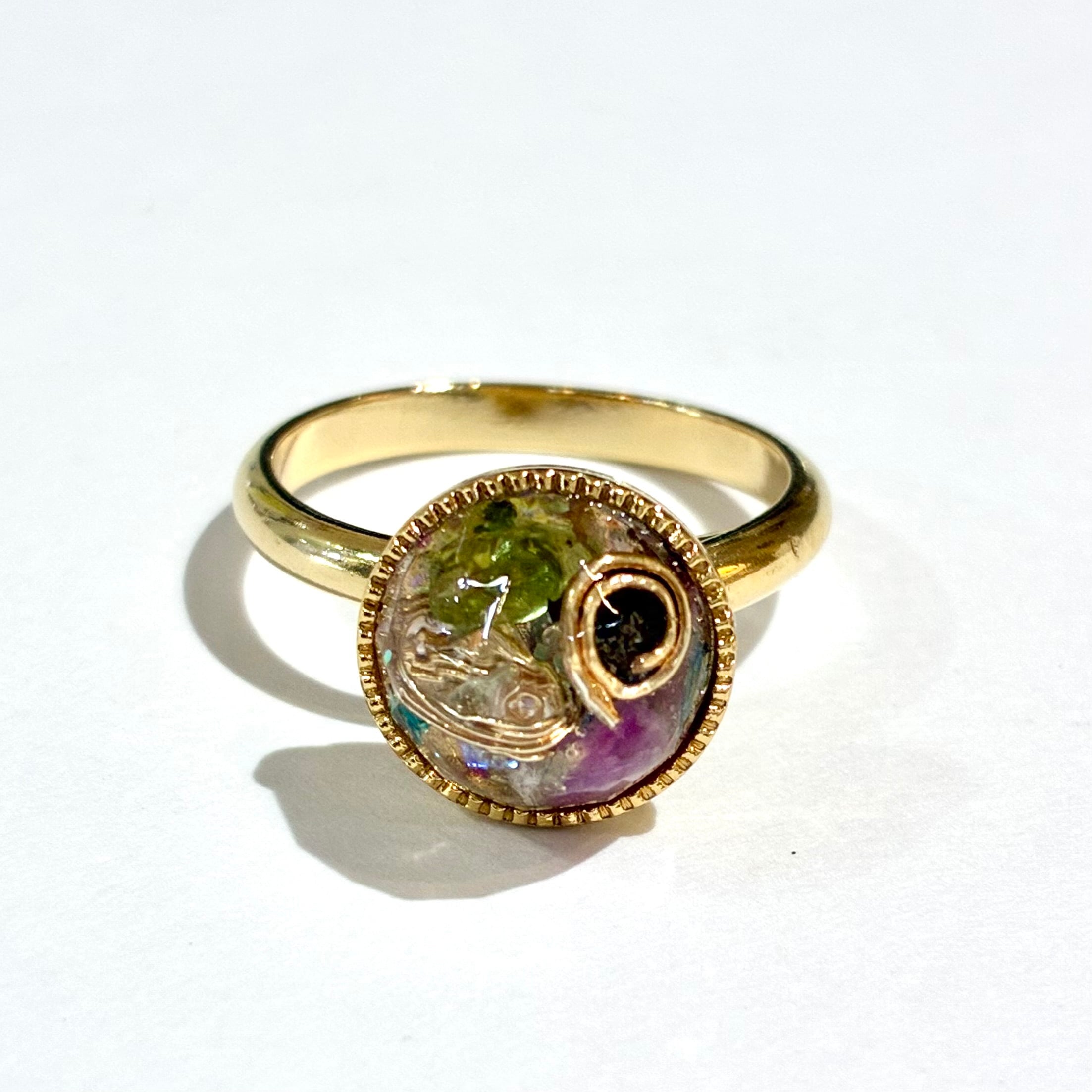 【宇宙の泉】超隕石入りオルゴナイトリング〜ルビー、水晶、ペリドット〜(3456)