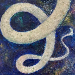 〈使用素材〉:木製パネル・アクリル絵具・樹脂・天然石・銀箔など