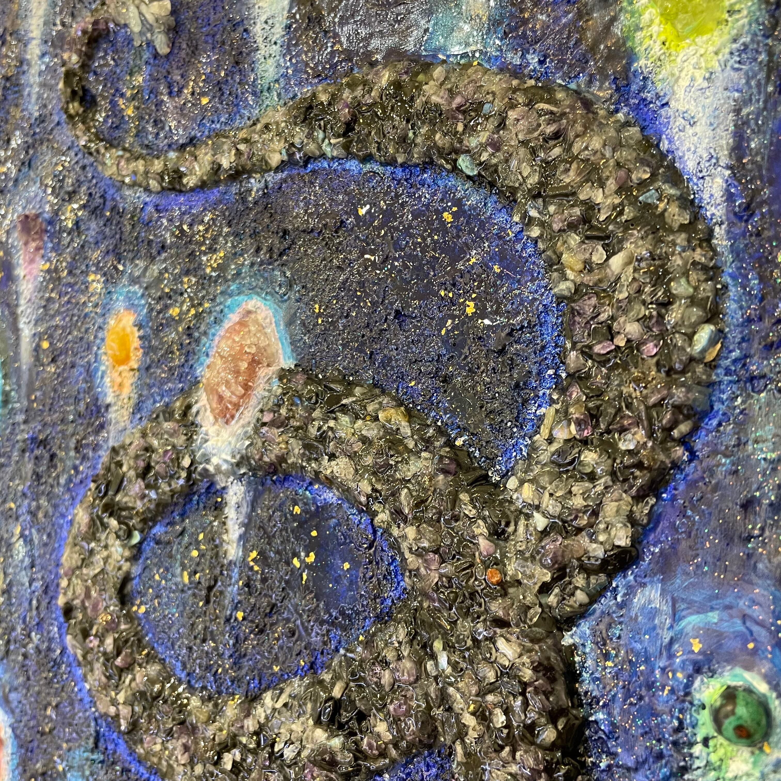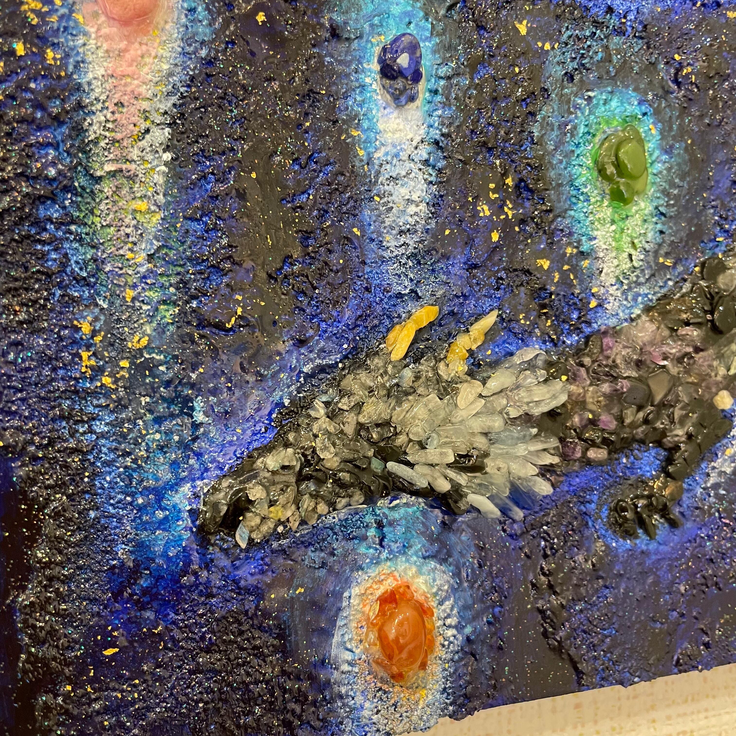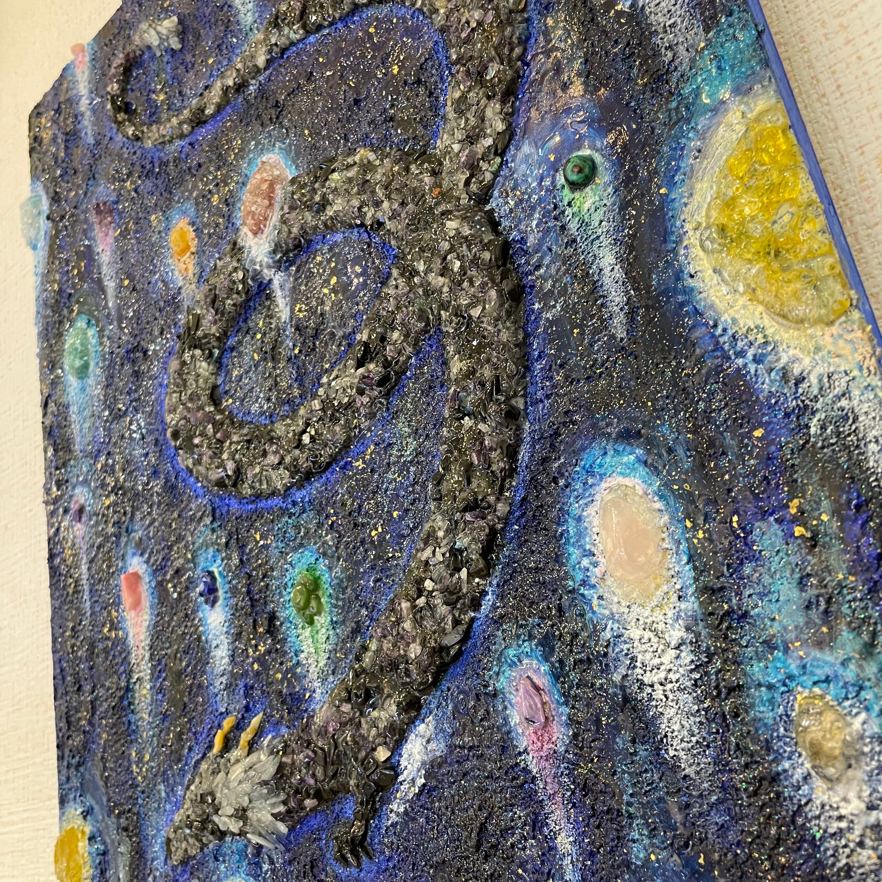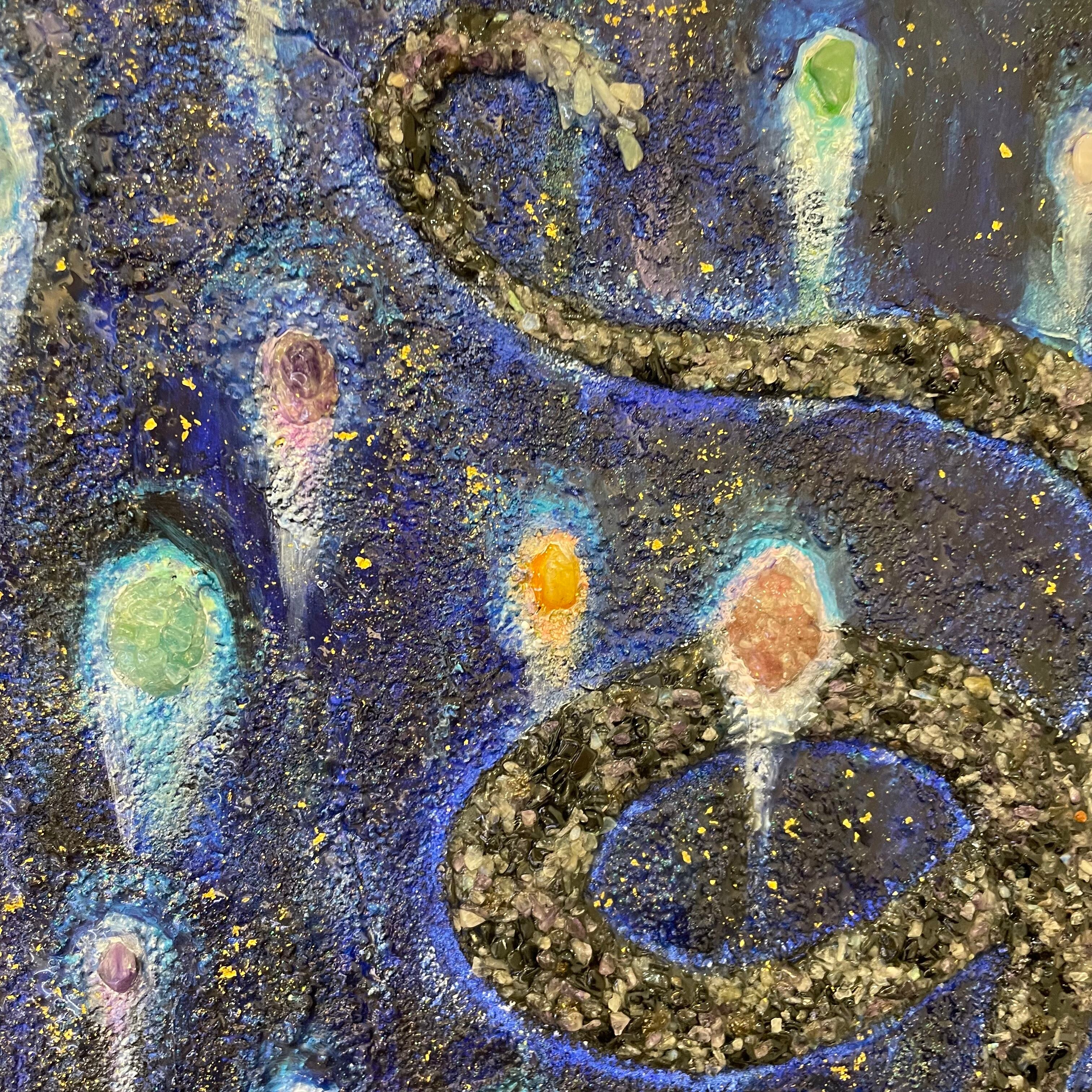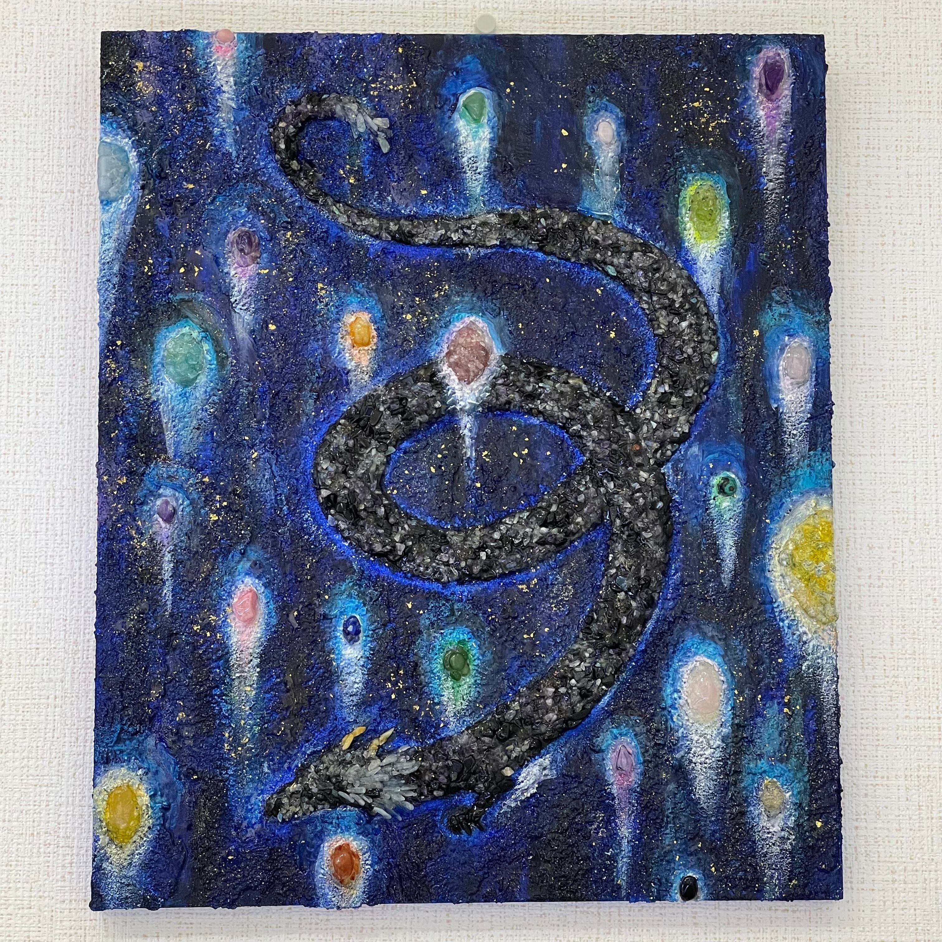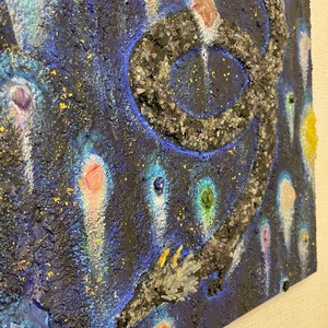 〈使用素材〉:木製パネル・アクリル絵具・樹脂・天然石・銀箔など