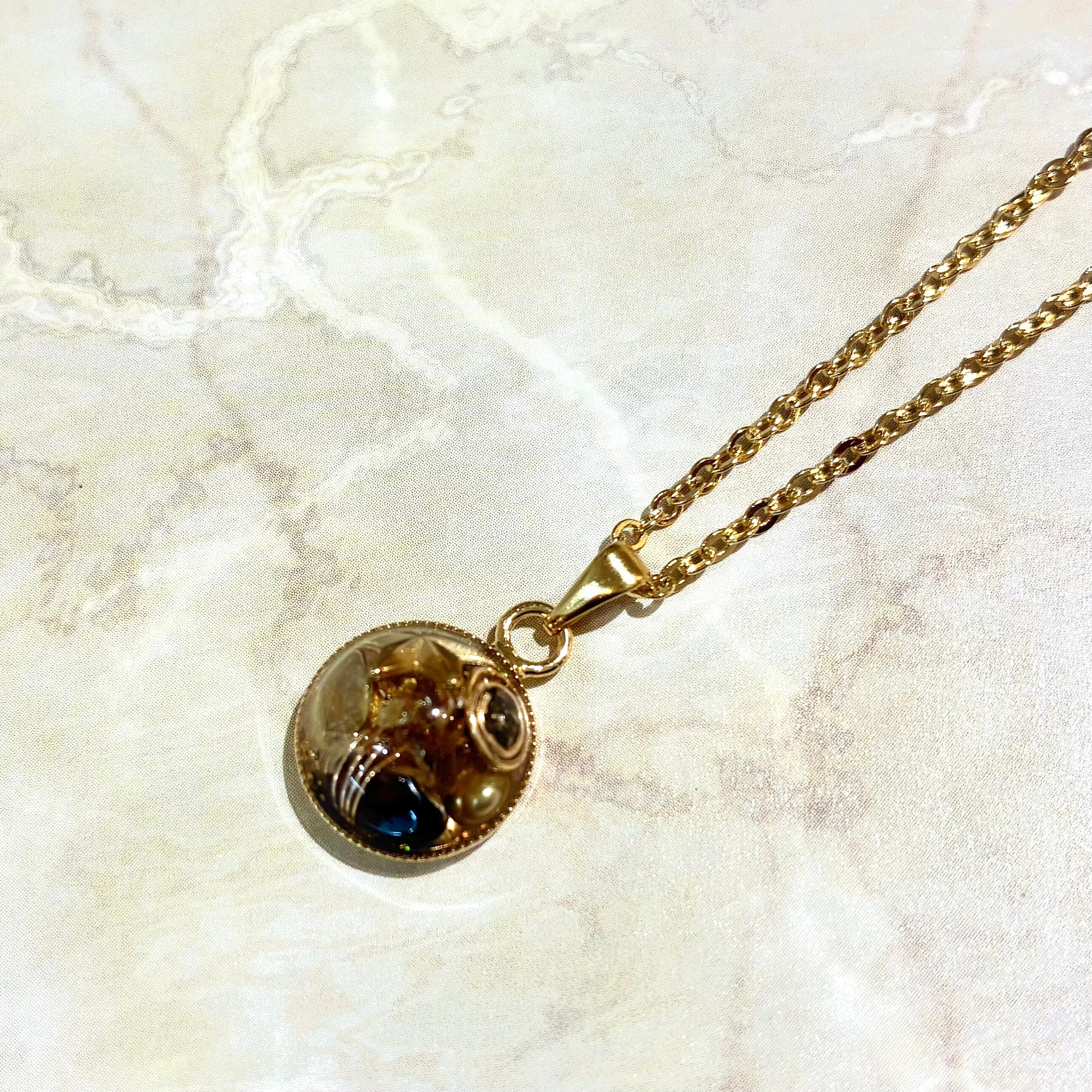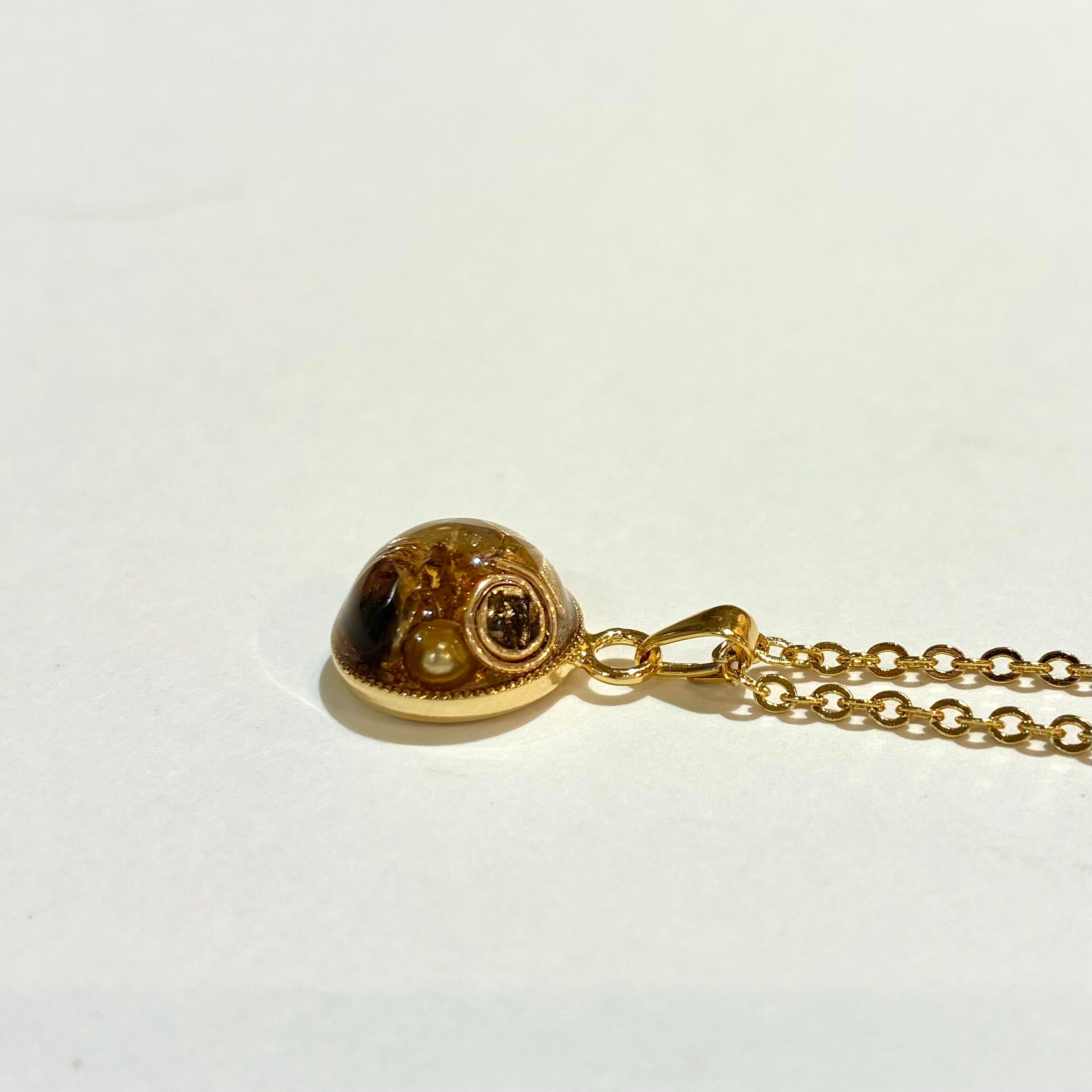 使用素材:超隕石®︎、天然石、金属、パールビーズ、ラメ、ペンダントトップ台座・チェーン(真鍮)