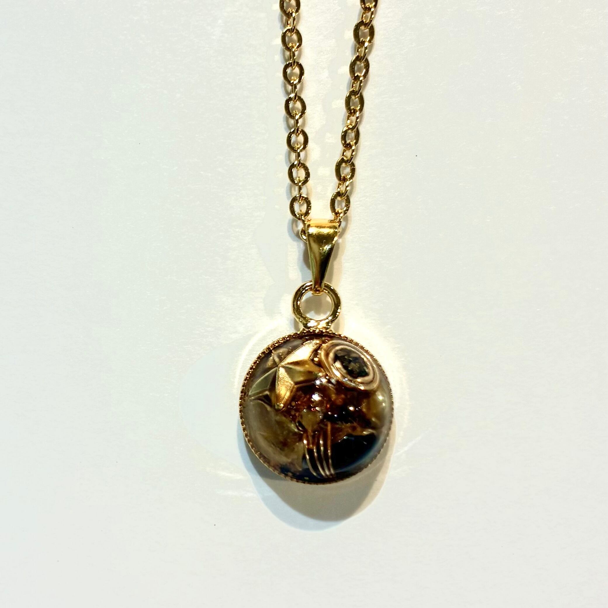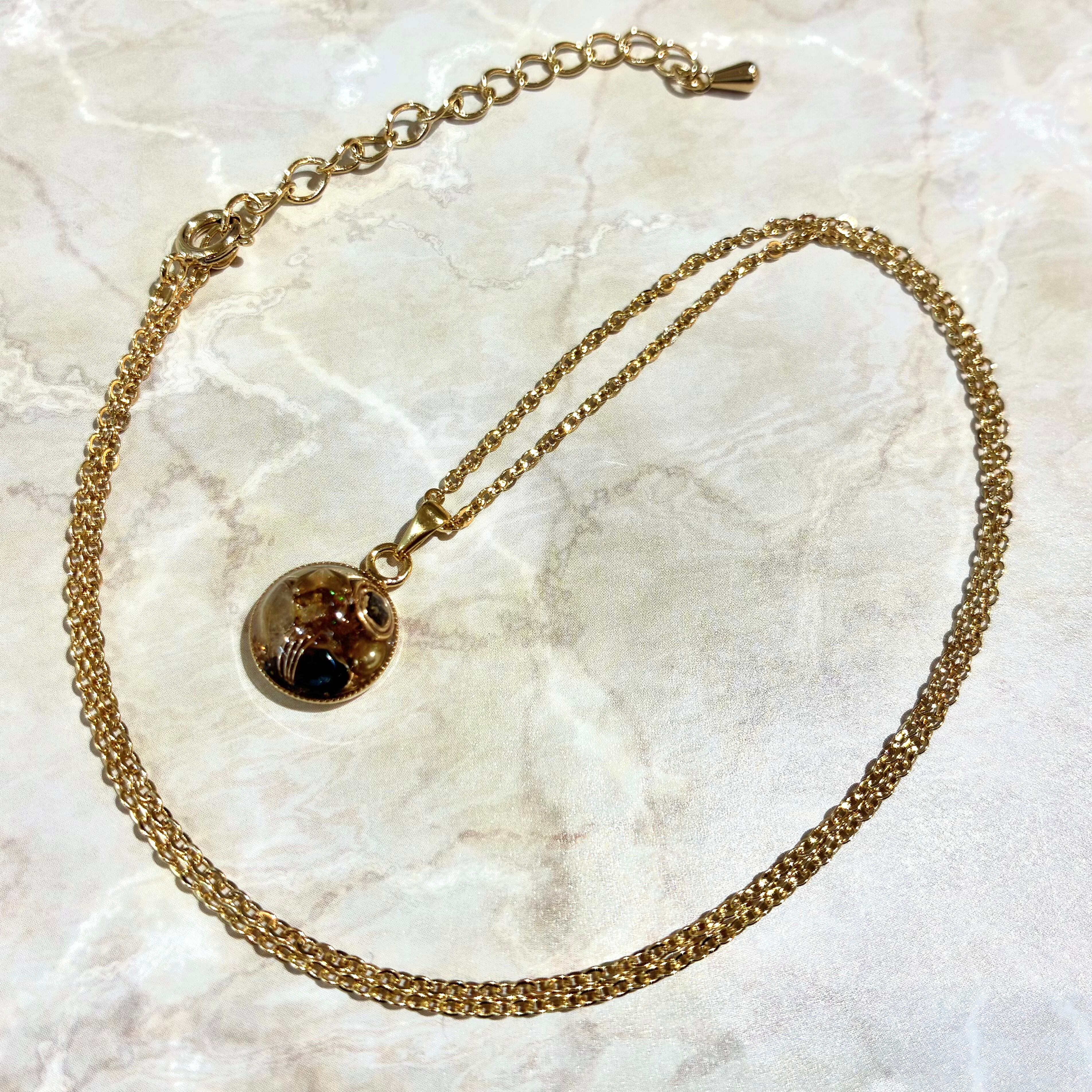 以前より大変好評いただき、販売開始、再販毎に即売り切れ、を繰り返しております「金運・仕事運アップ隕石入りオルゴナイトネックレス」。