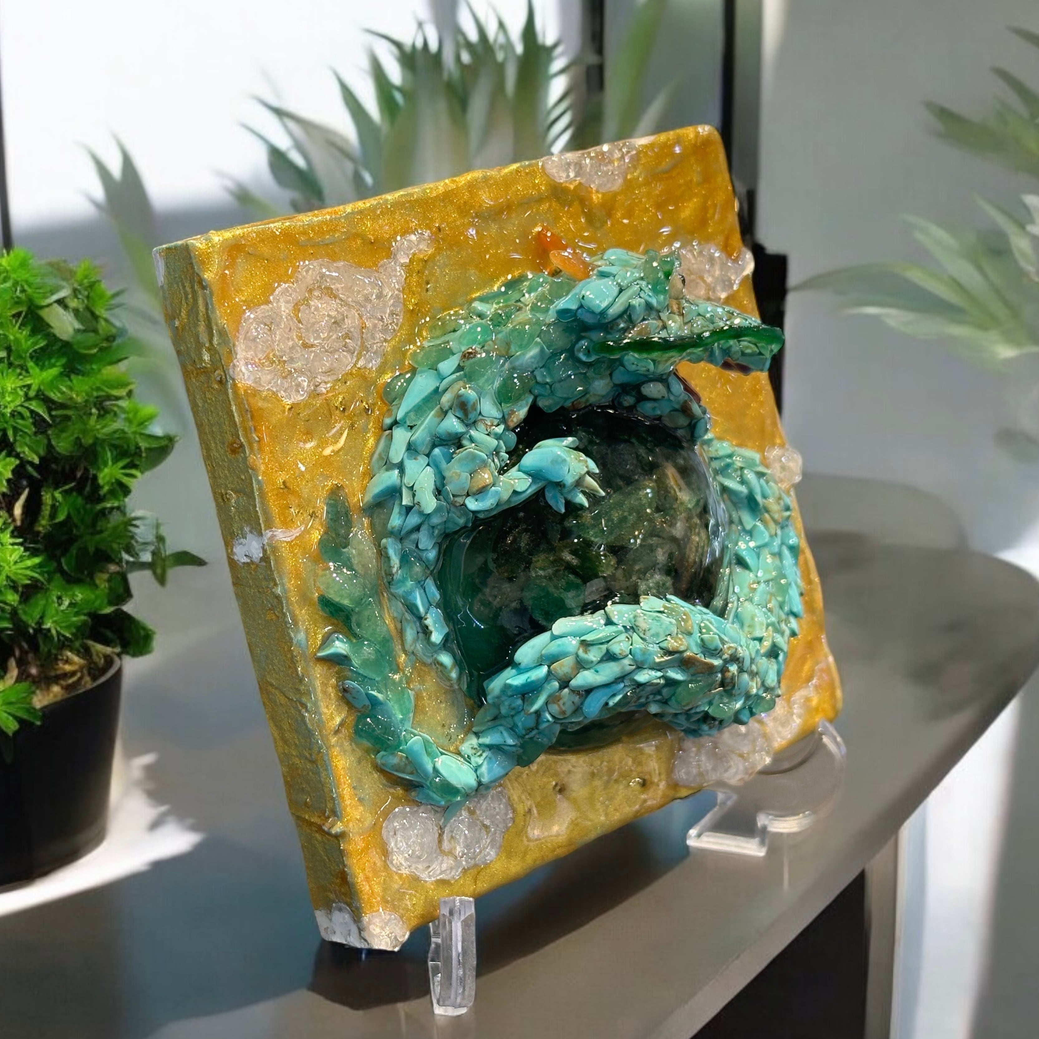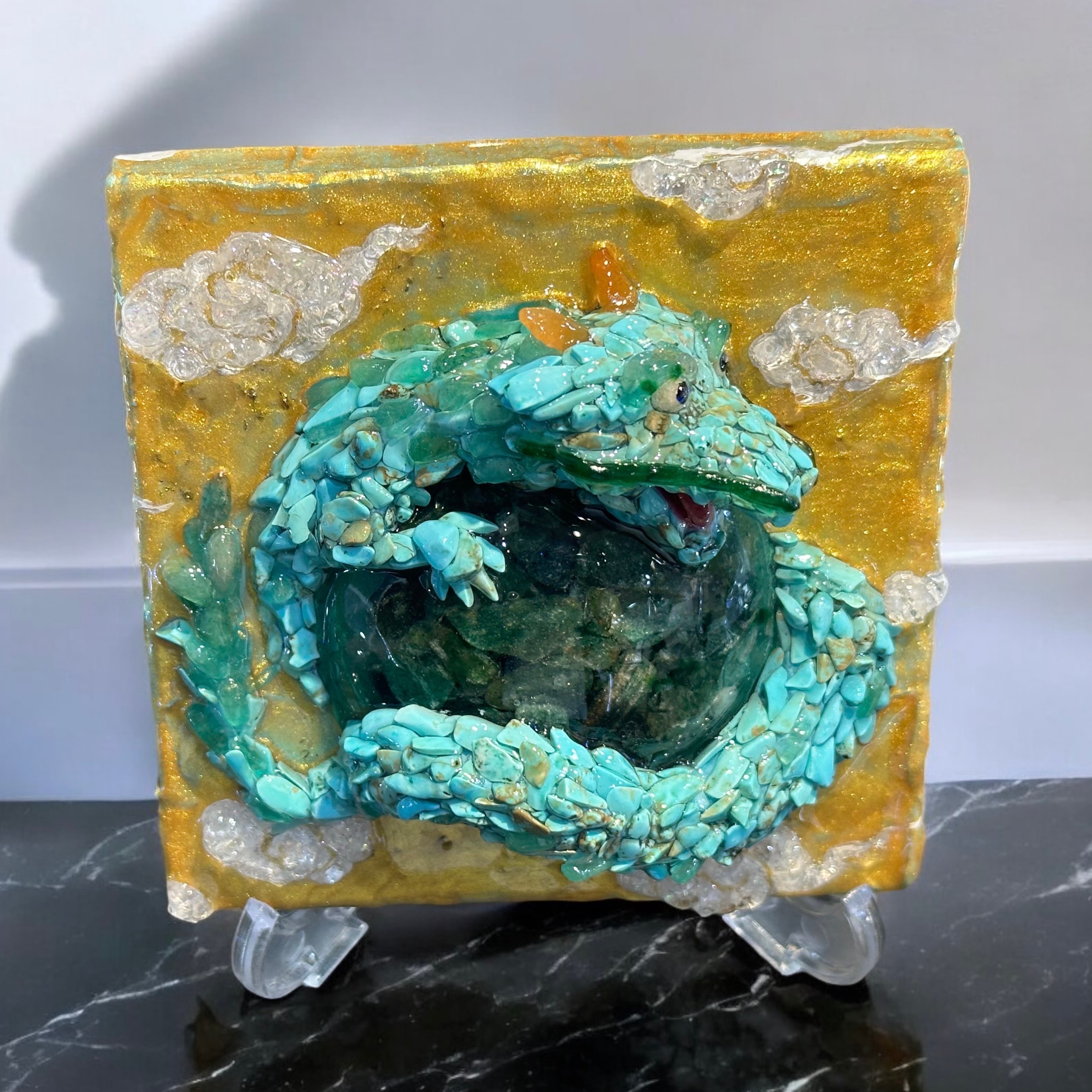 隕石アート☆「運気を紡ぎ楽しむ緑龍」